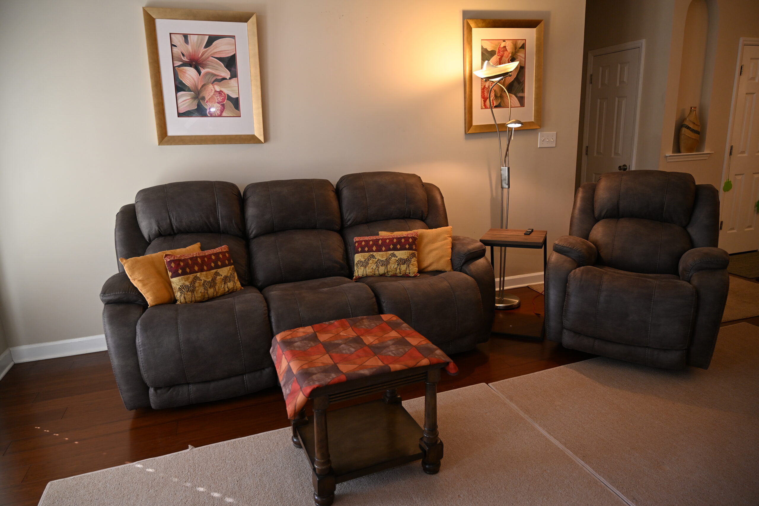 Description: $1200 One level home has den with sofa, recliner and 60"TV. Kitchen with dining area. Bedroom with QUEEN bed and full bath in hall. Screened porch with seating.