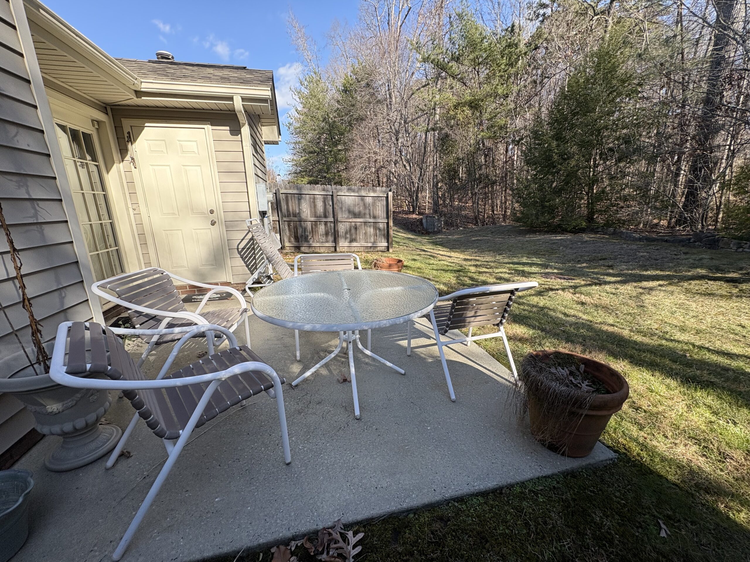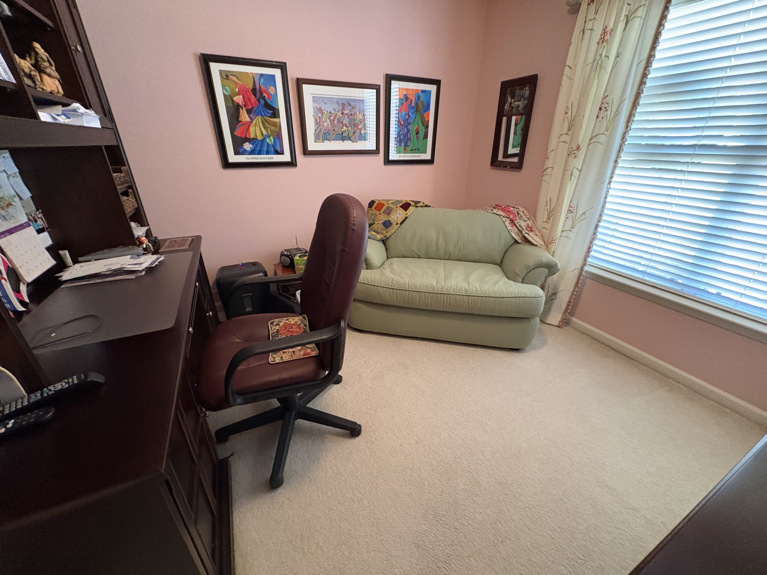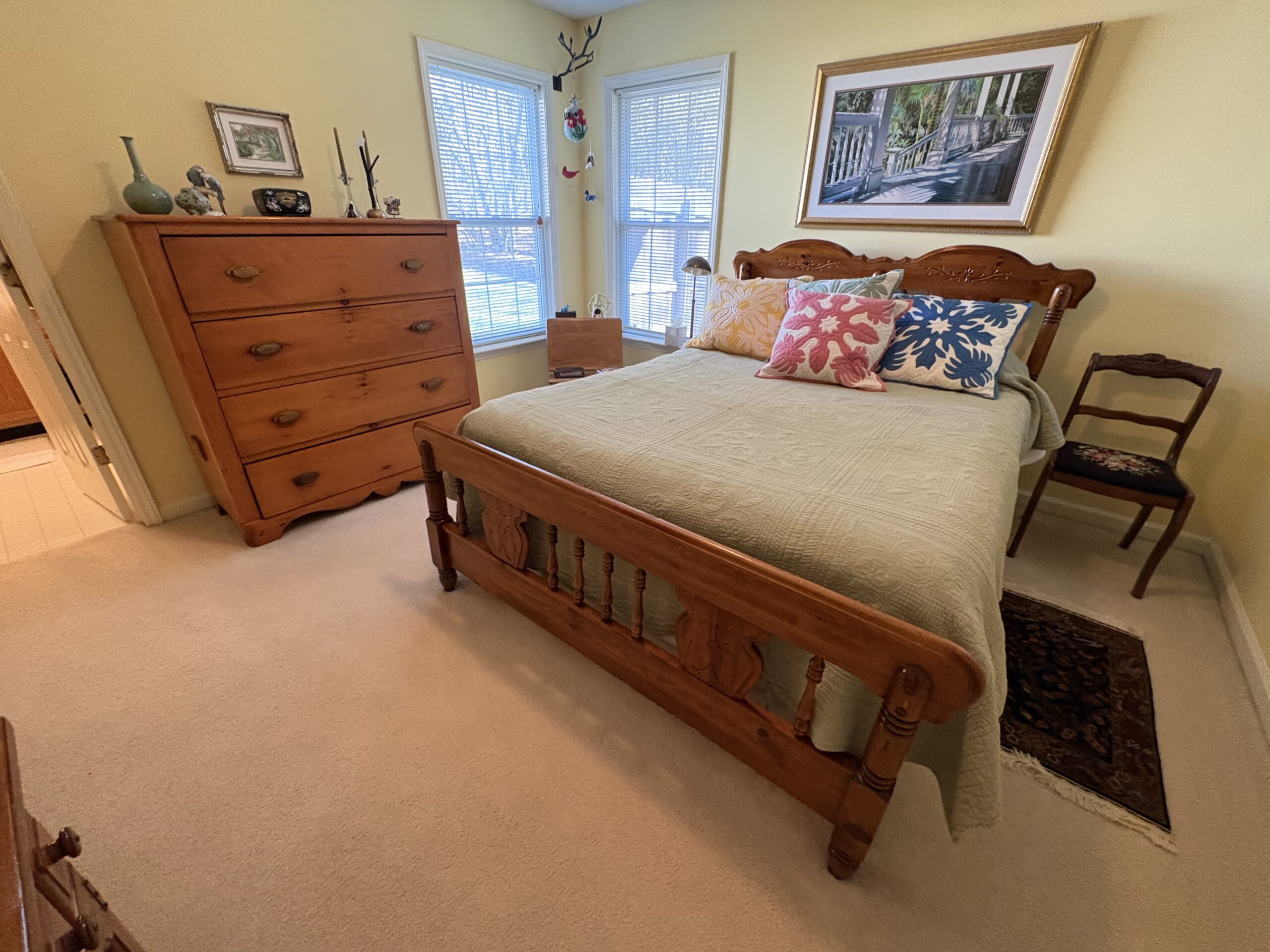 Description: $2250 One level townhome. Den has sofa, chair with ottoman and 32"TV. Kitchen. Dining Area. Primary bedroom has QUEEN bed, full private bath. Bedroom 2 has DOUBLE bed, Full bath in hall. Office. Patio