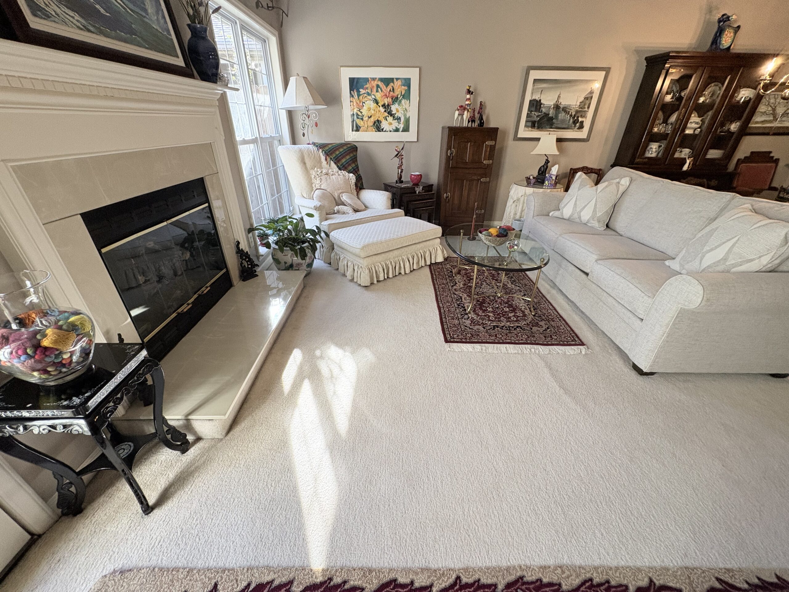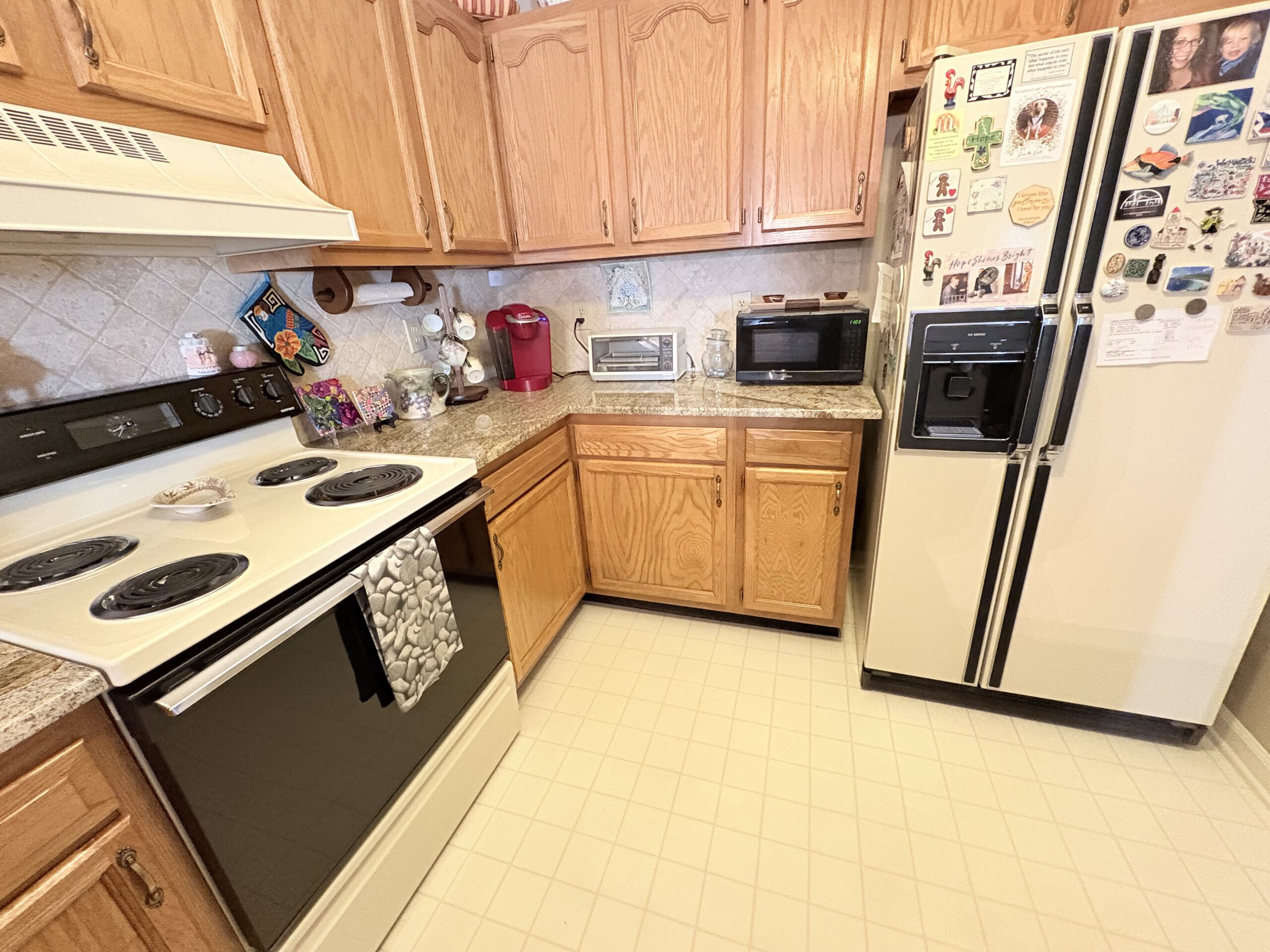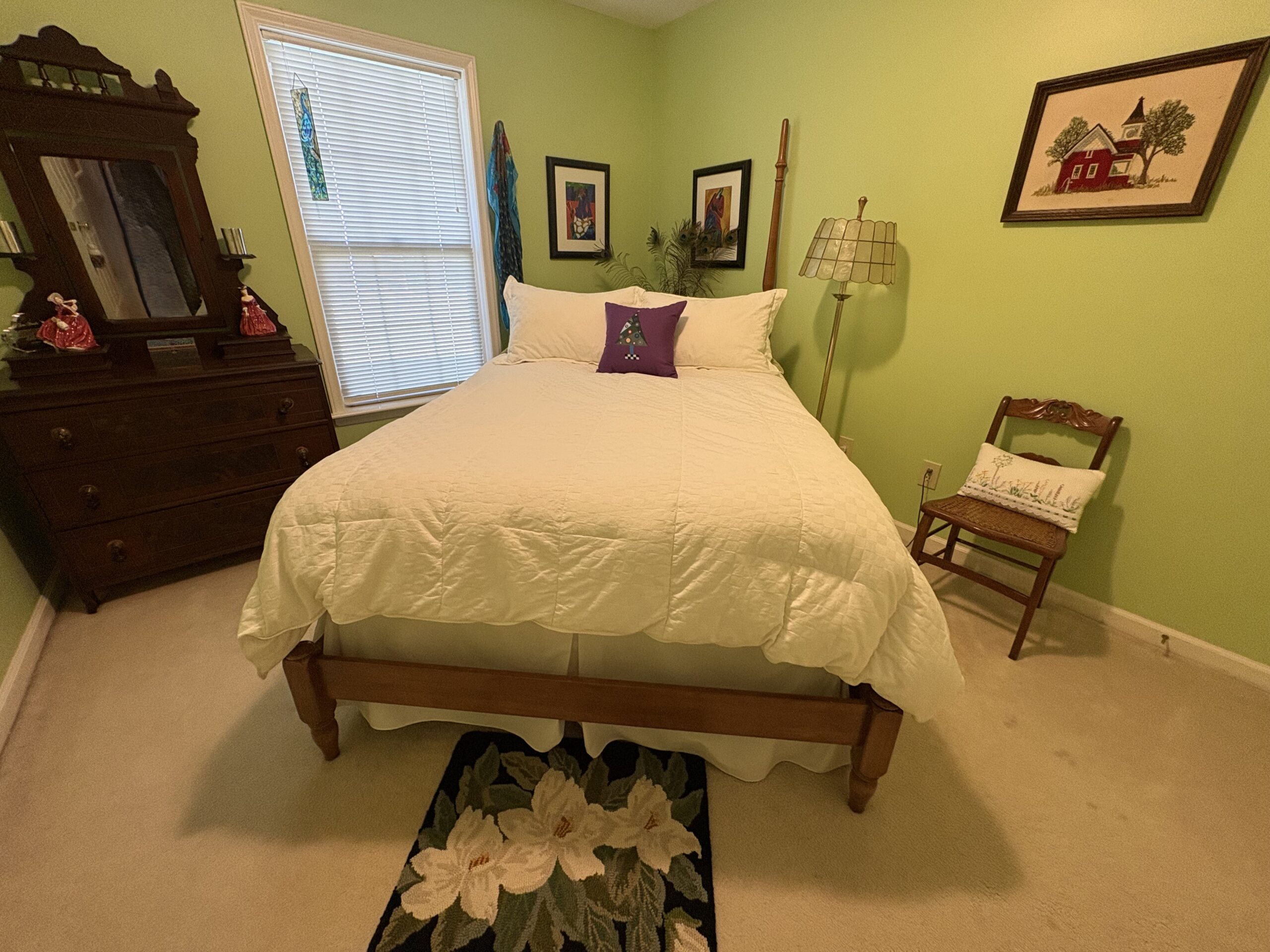 Description: $2250 One level townhome. Den has sofa, chair with ottoman and 32"TV. Kitchen. Dining Area. Primary bedroom has QUEEN bed, full private bath. Bedroom 2 has DOUBLE bed, Full bath in hall. Office. Patio