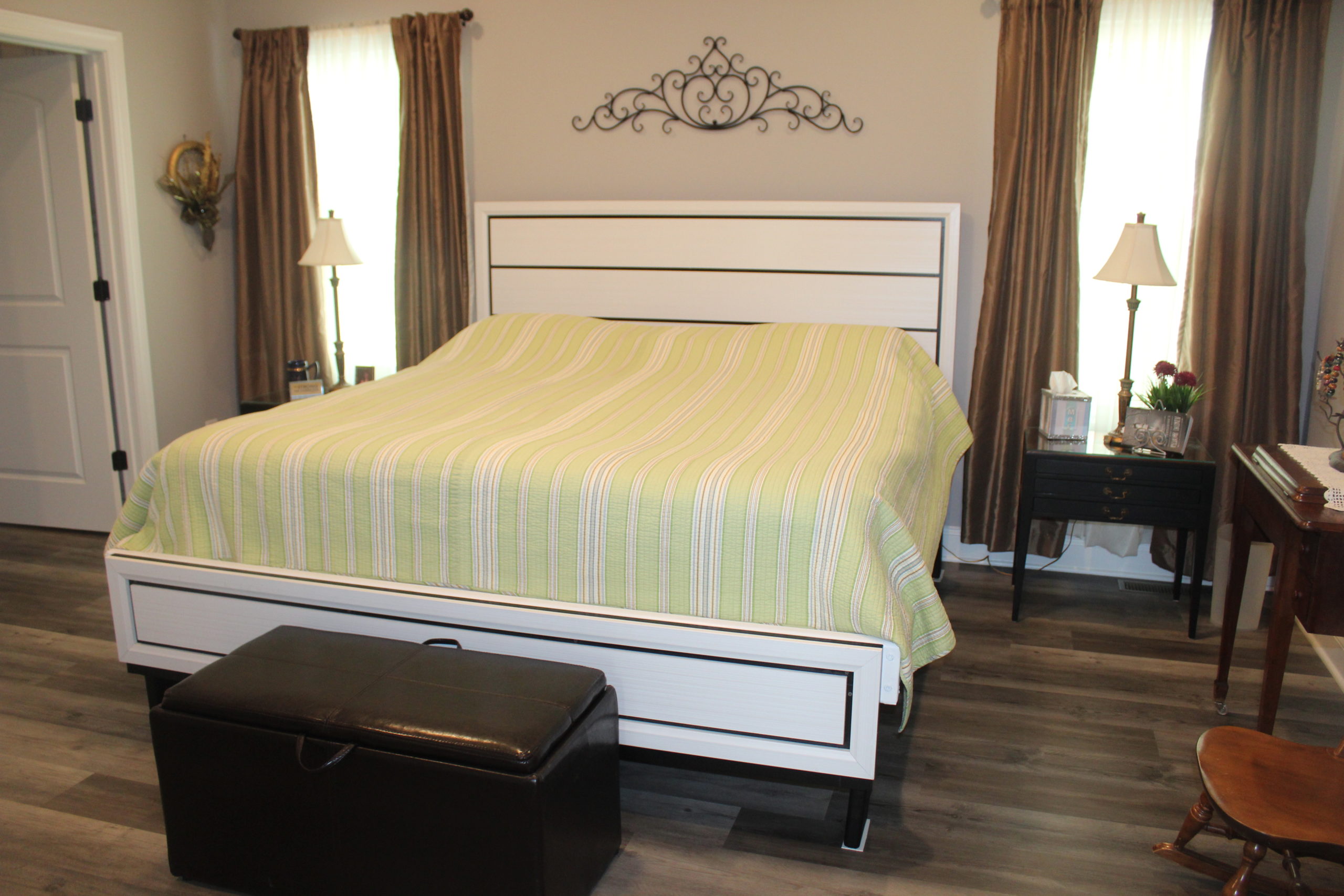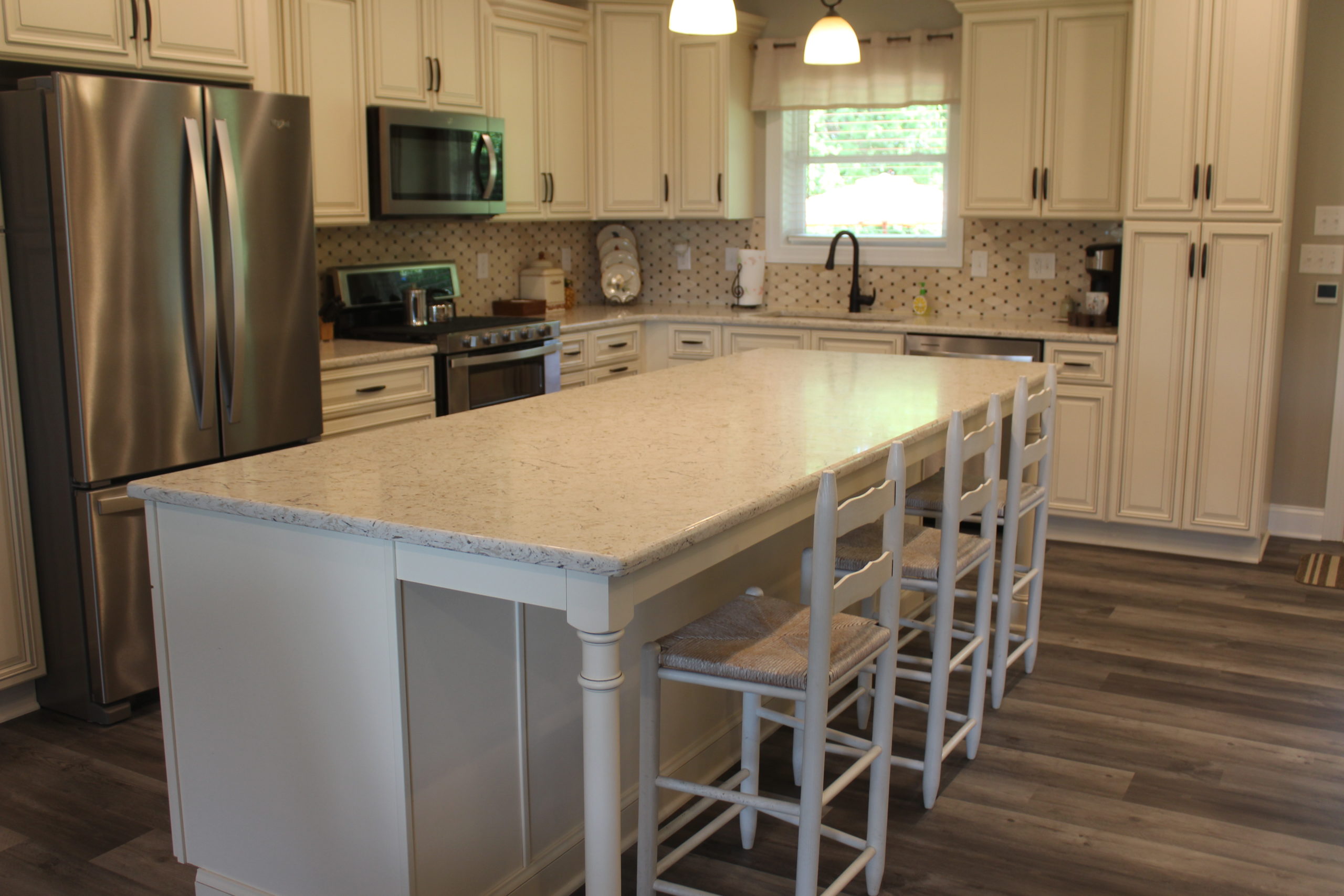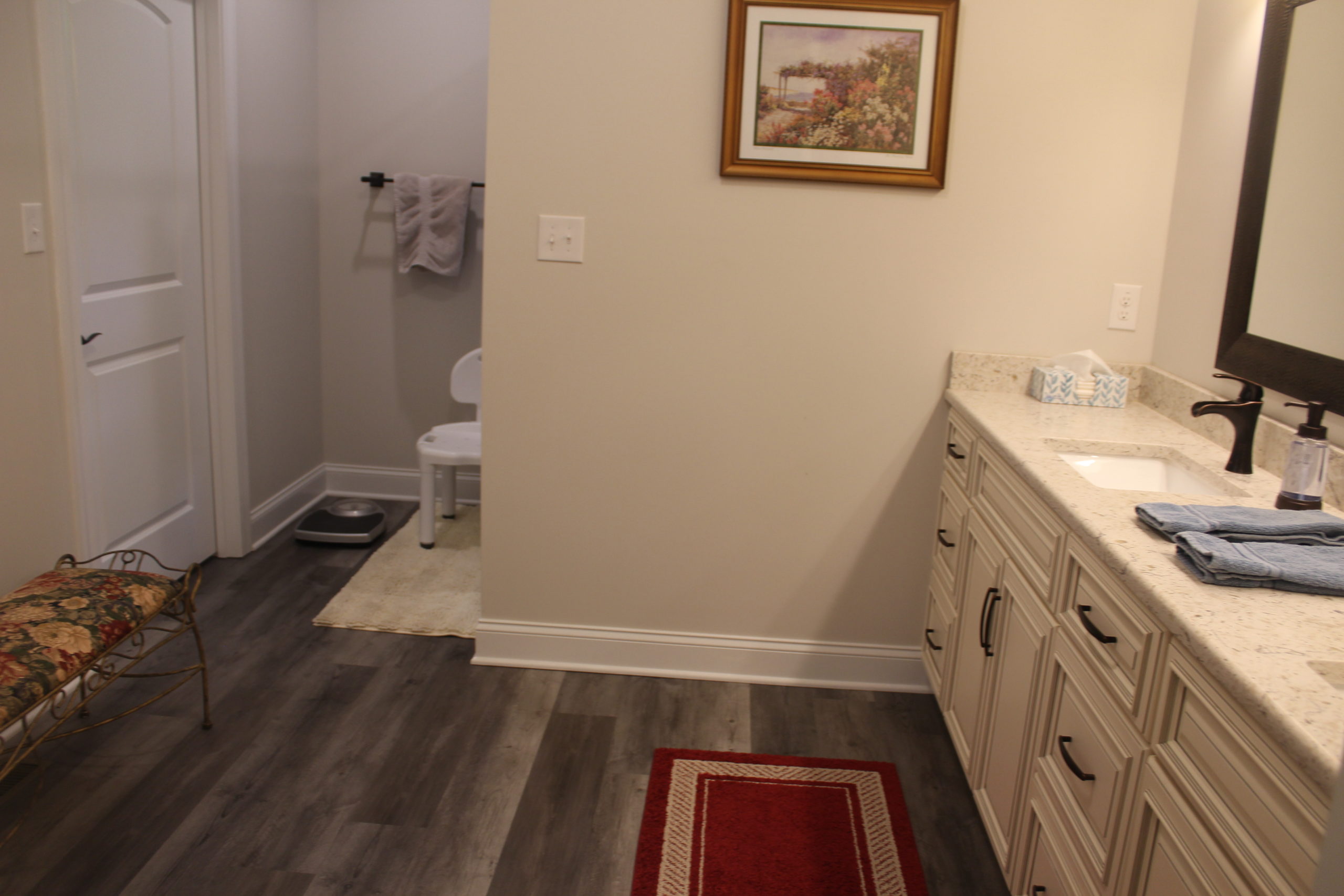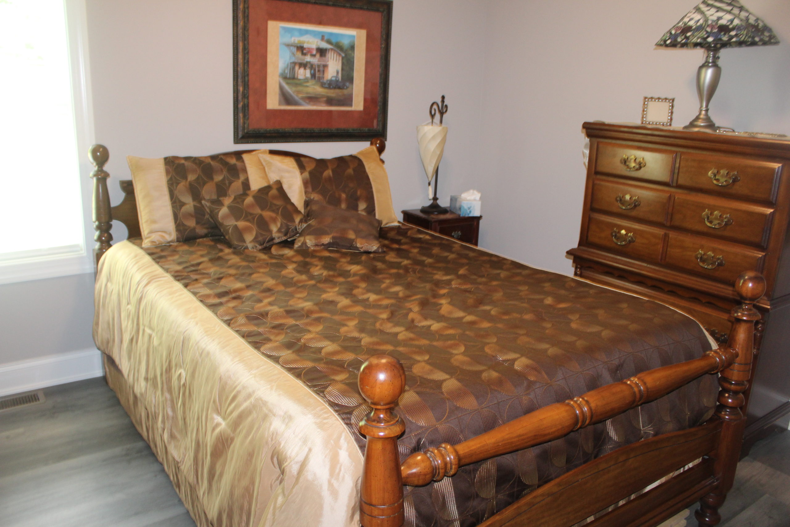 Description: $2100 One level home. Den has a sofa, two recliners and two chairs with a 60" TV. New kitchen. The primary bedroom has a KING bed and a private full bath. The 2nd bedroom has a QUEEN bed and the third bedroom has a FULL bed. Full bath in the hall. The outdoor area has a charcoal grill and seating.