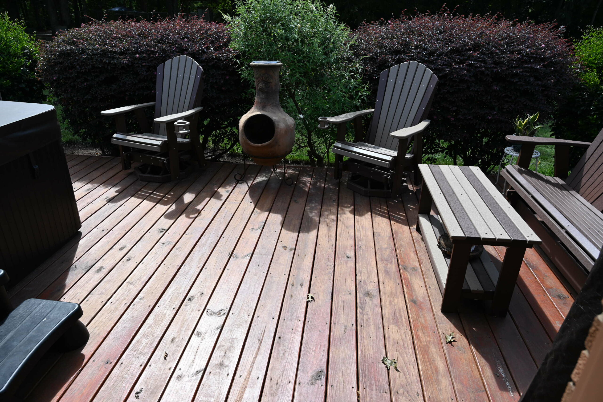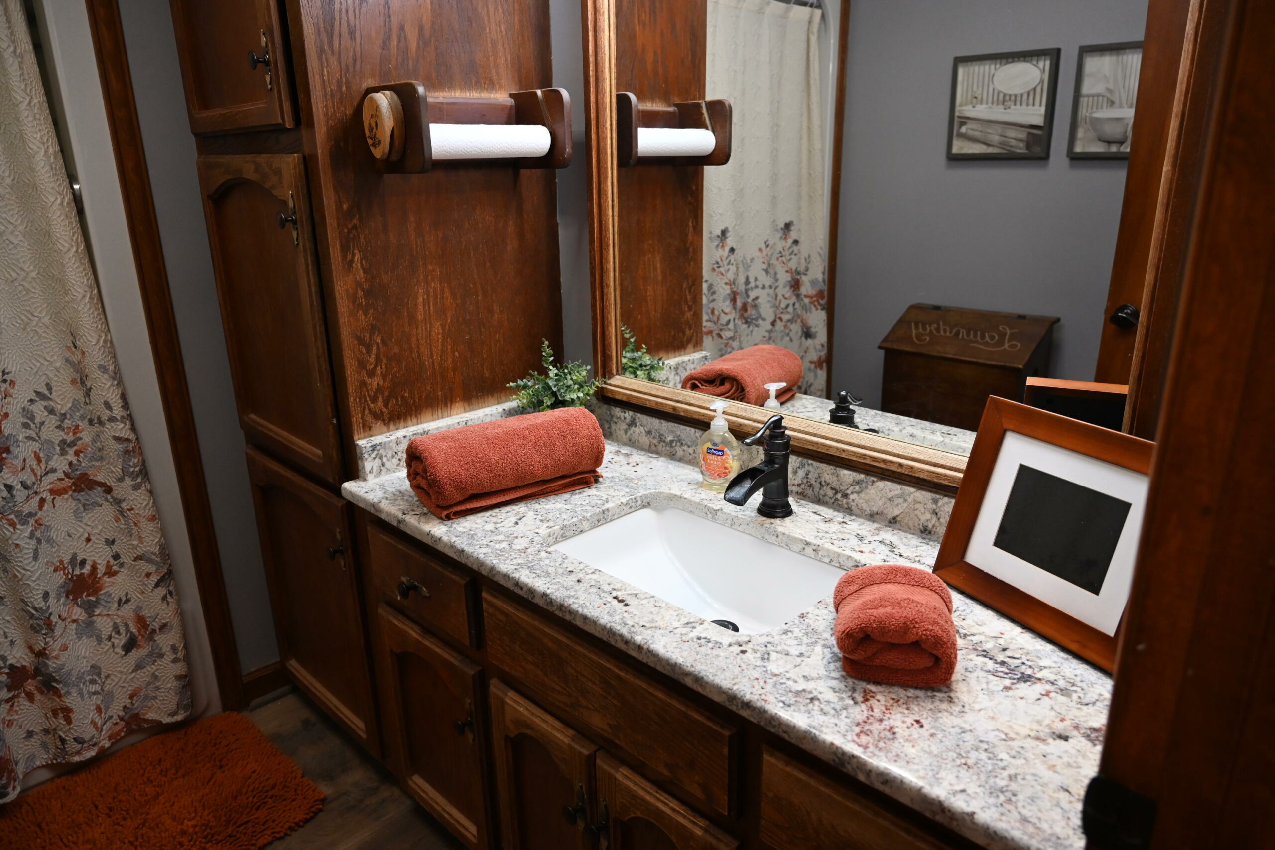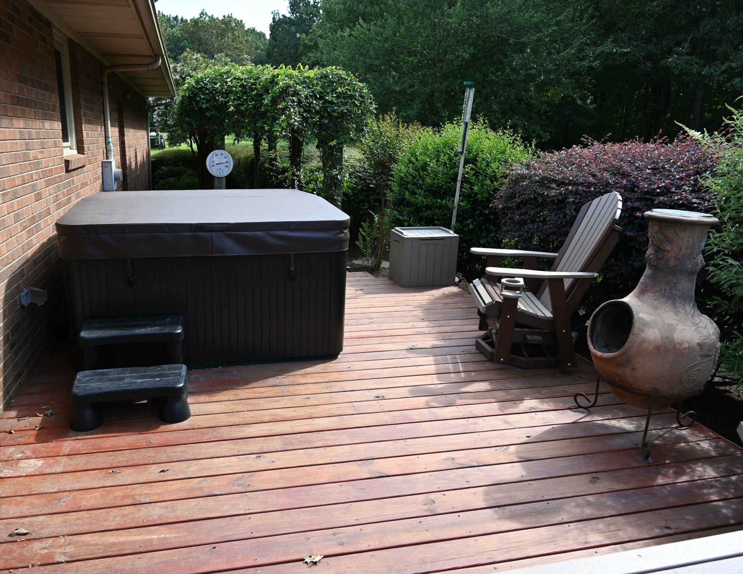 One level home. Den has sectional, 2 recliners and 50"TV. Kitchen with 23"TV. Dining Area. Primary Bedroom with KING bed and full private bath. Bedroom 2 has QUEEN bed, 40"TV. Bedroom 3 has QUEEN bed, 48"TV. Full bath in hall. Deck with hot tub and seating.
