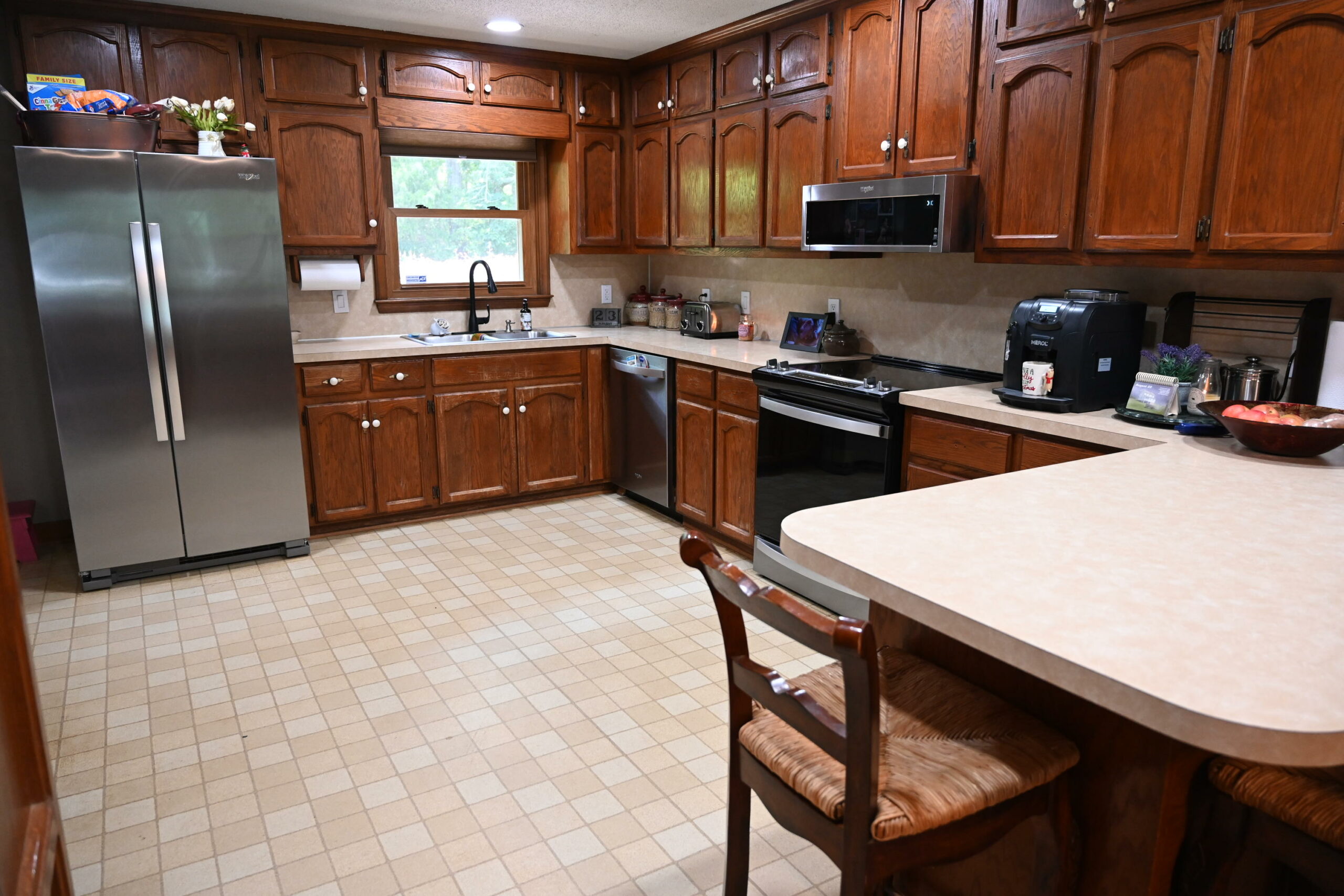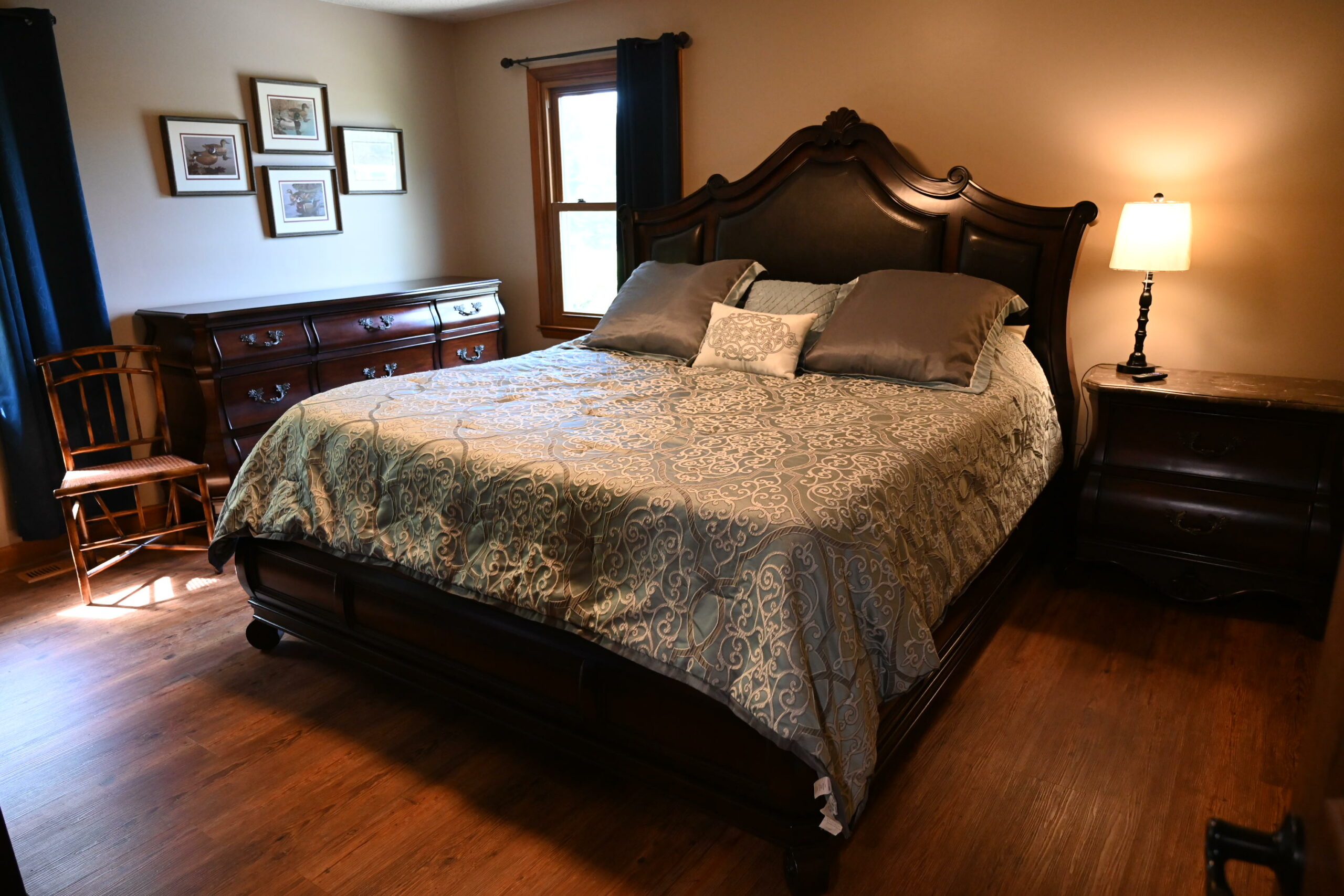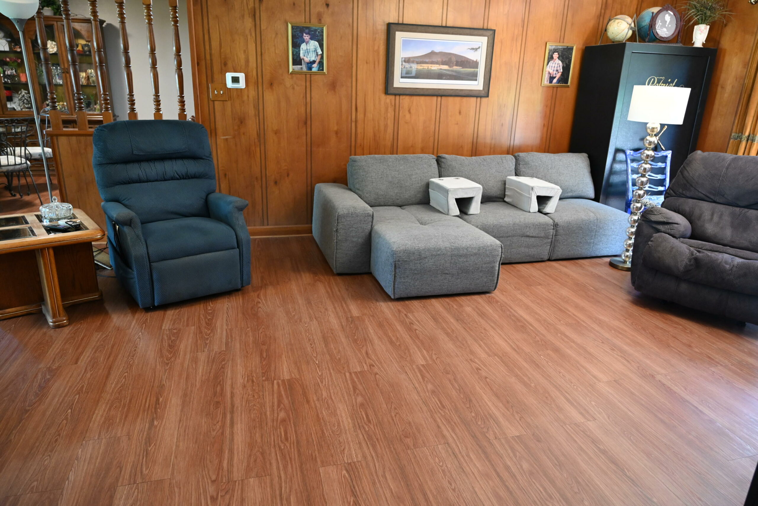 One level home. Den has sectional, 2 recliners and 50"TV. Kitchen with 23"TV. Dining Area. Primary Bedroom with KING bed and full private bath. Bedroom 2 has QUEEN bed, 40"TV. Bedroom 3 has QUEEN bed, 48"TV. Full bath in hall. Deck with hot tub and seating.