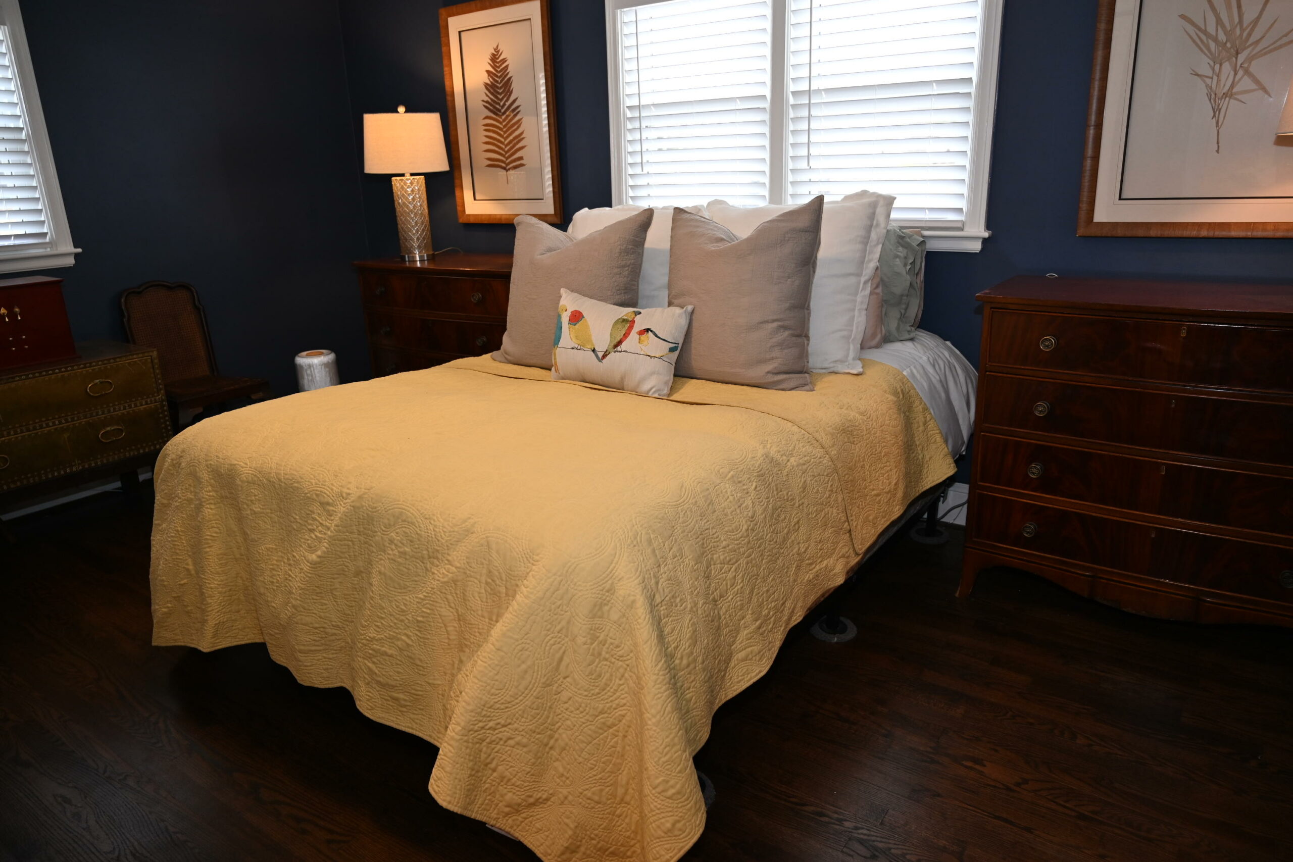 Description: $3050 One level home has a living room with a sofa, two chairs and a 50" TV. The den has a sofa, two chairs and a 32" TV. There is also a dining room and kitchen. The Primary bedroom has a QUEEN bed and full bath in the hall. The 2nd bedroom has a DOUBLE bed and the 3rd bedroom has a QUEEN bed. They share a full bath in the hall. The outdoor area has a gas grill, table with six chairs, sofa and four chairs.