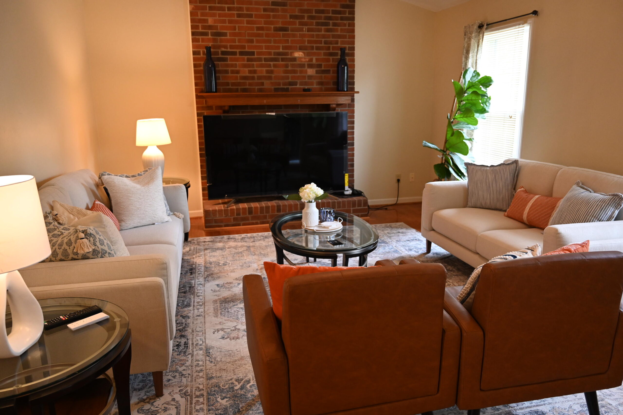 Description: $3100 One level home. The den has two sofas, two chairs and a 75" TV. Kitchen. The main bedroom has a QUEEN bed, 50" TV and full bath. Bedroom 2 has a QUEEN bed, 50" TV. 3rd bedroom has a QUEEN bed and a 50" TV. Full bath in the hall. The patio has a lounge chair, swing, six chairs and can have a grill if requested.