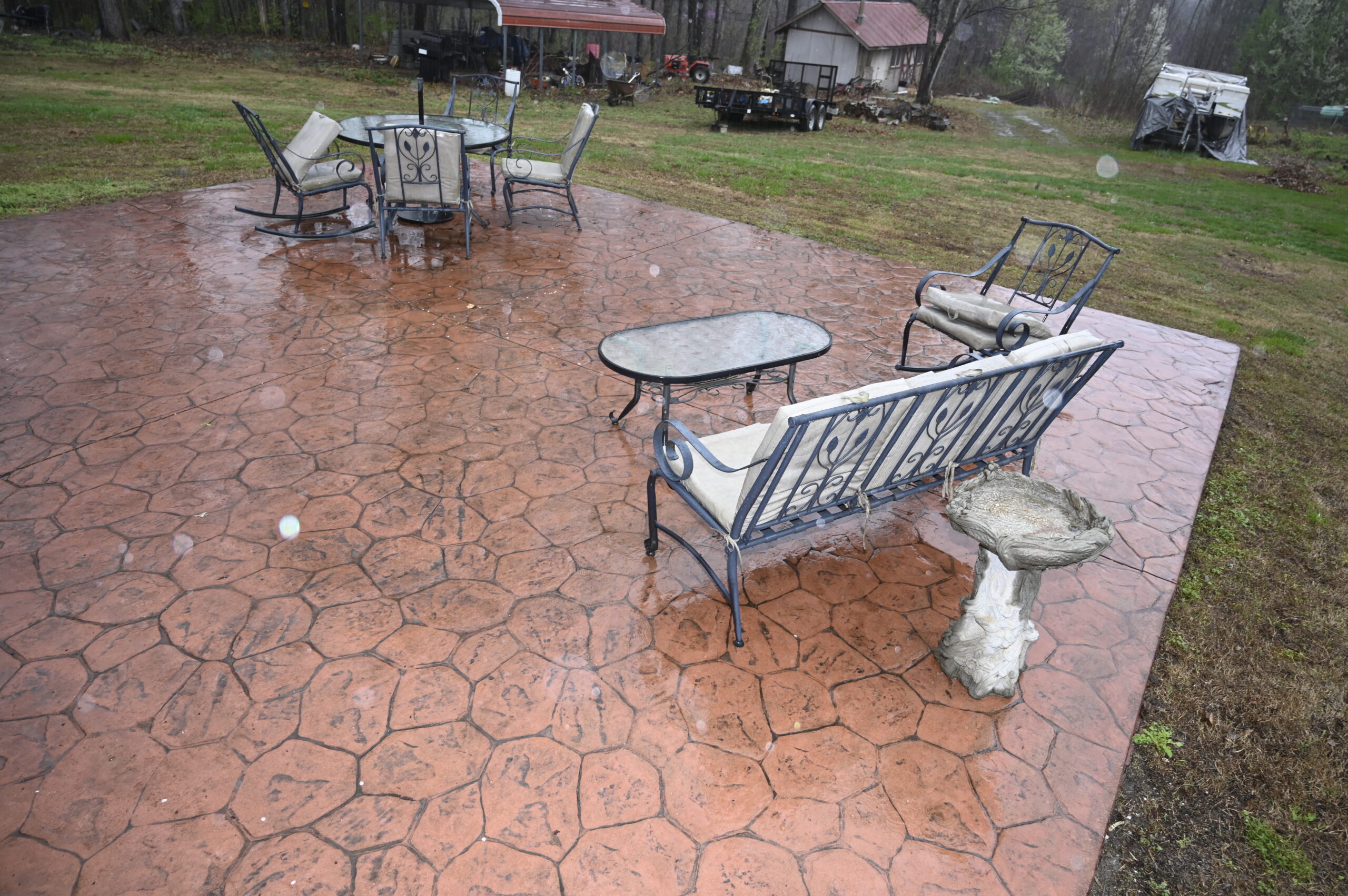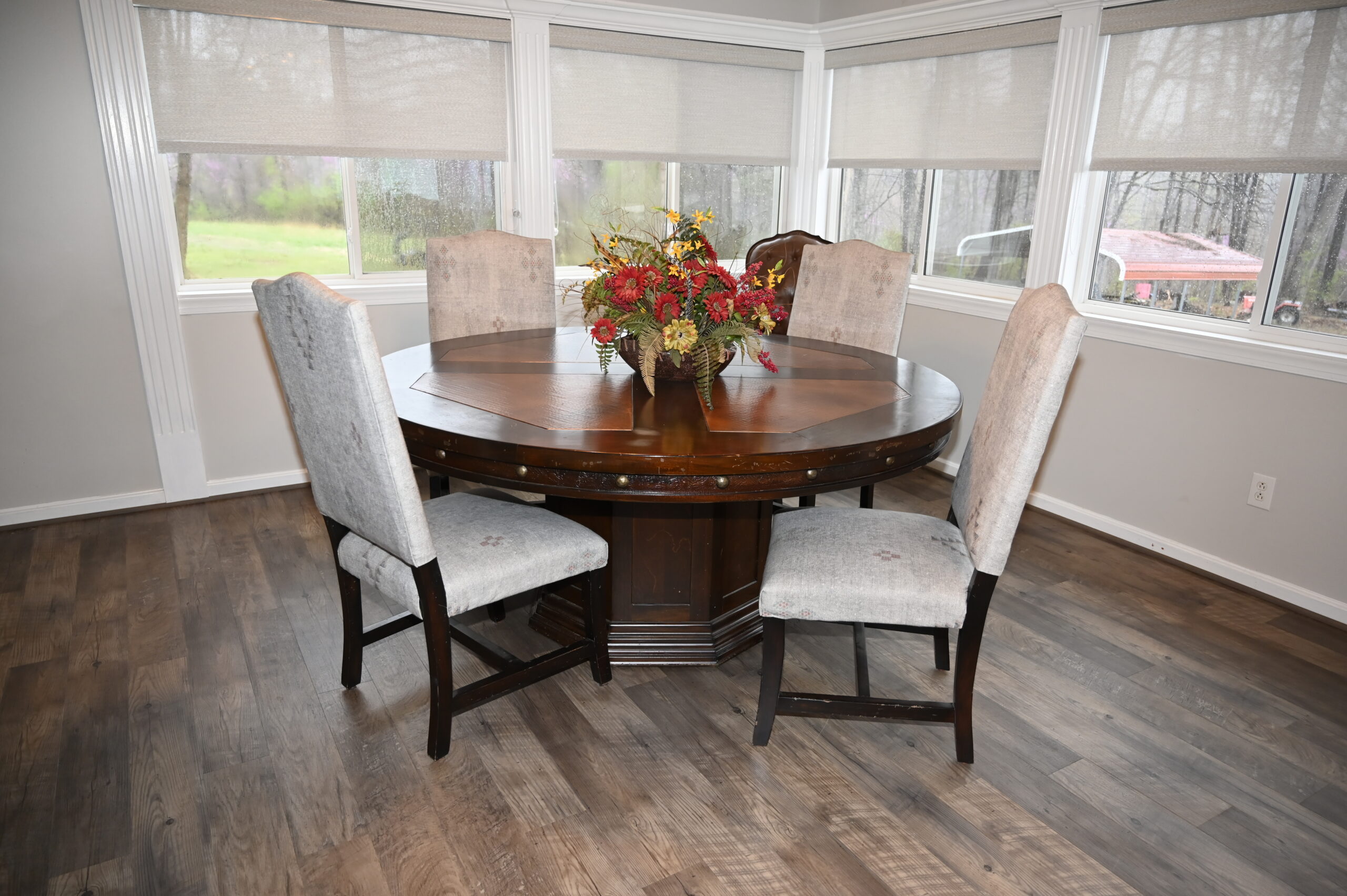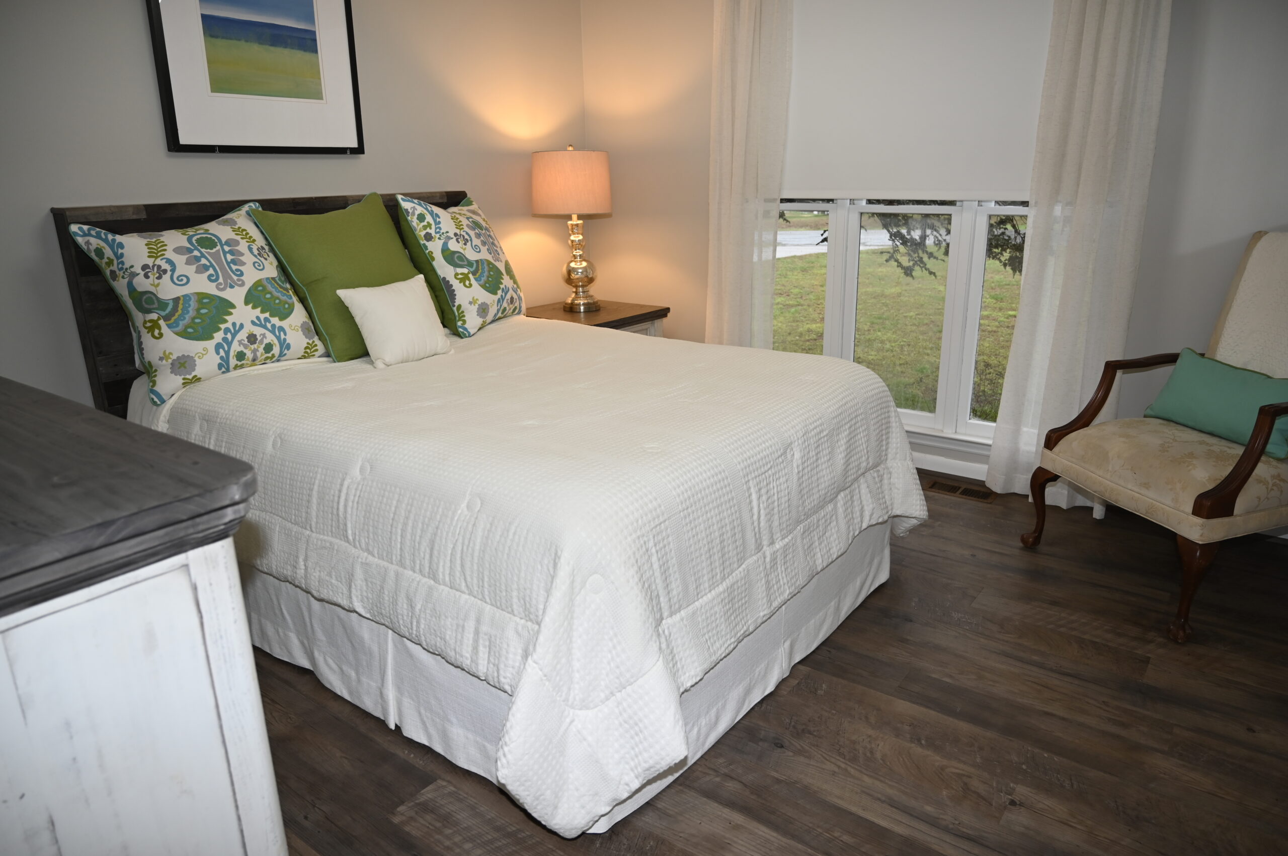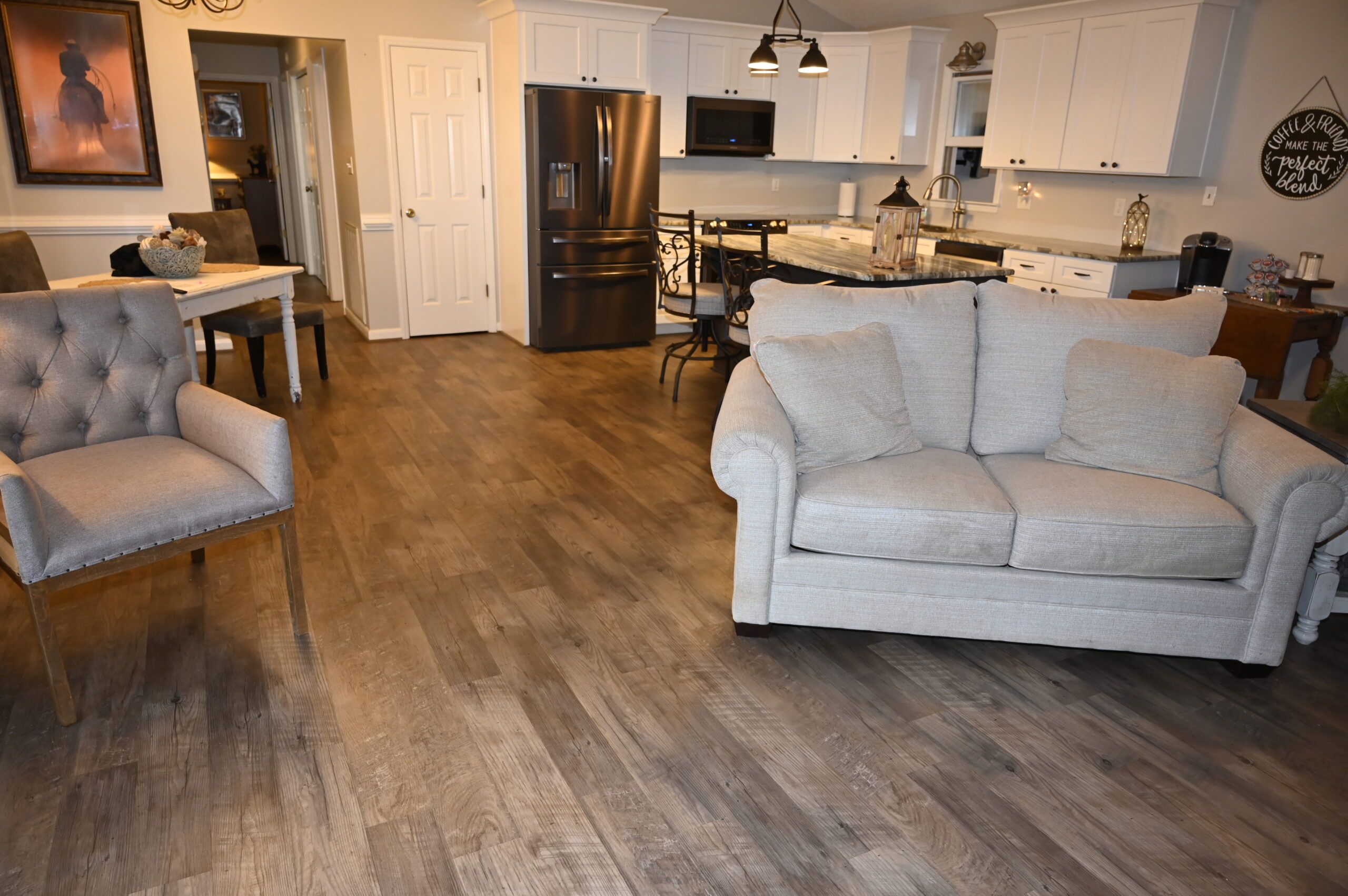 Description: $2450 One Level home. Den has loveseat and chair, 65"TV. Kitchen with bar seating and small dining area. Dining room. Primary Bedroom has KING bed, 32"TV. Full private bath. Bedroom 2 has QUEEN bed, 32"TV. Bedroom 3 has QUEEN bed, 32"TV. Full bath in hall. Patio with grill seating.