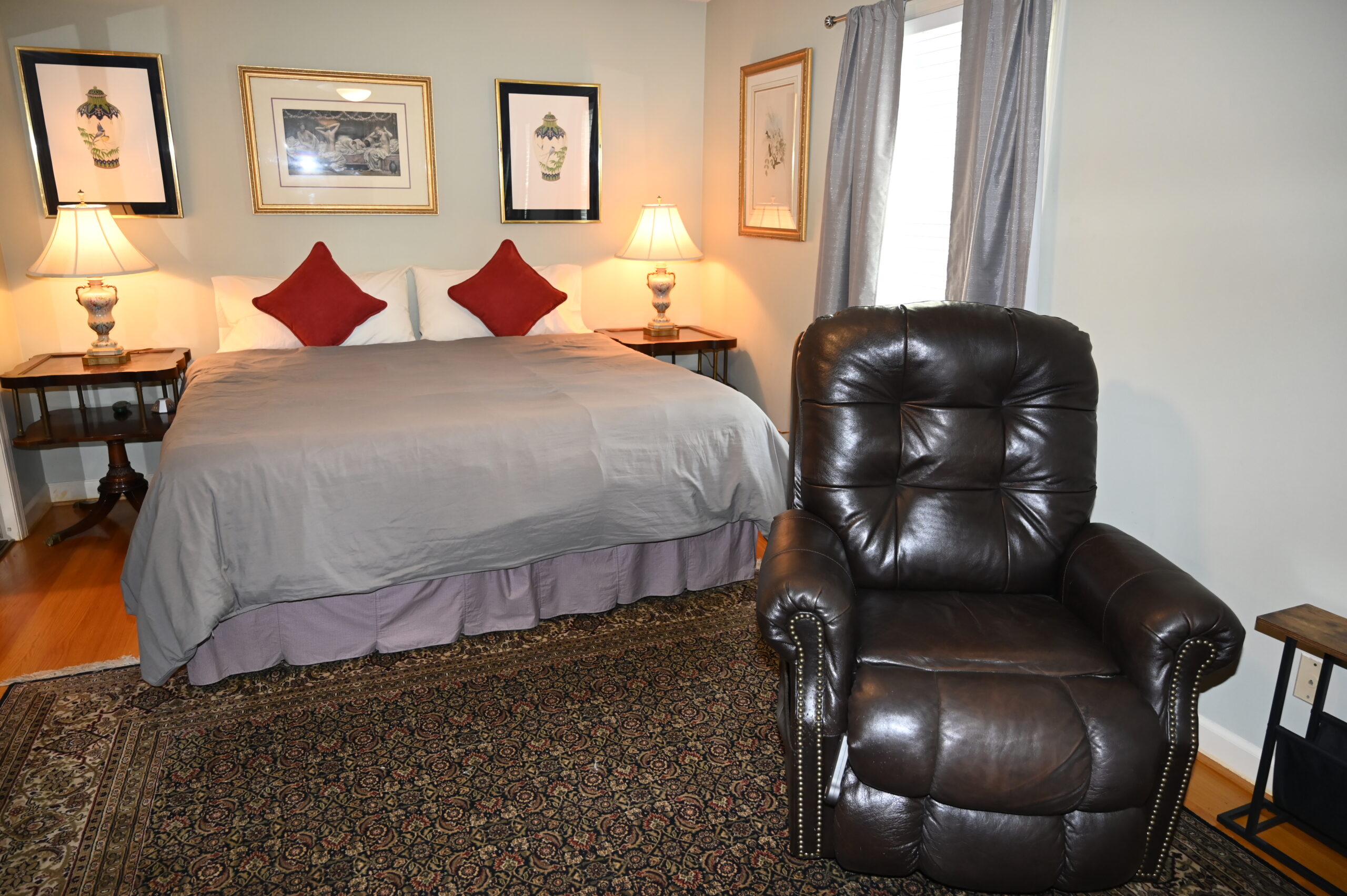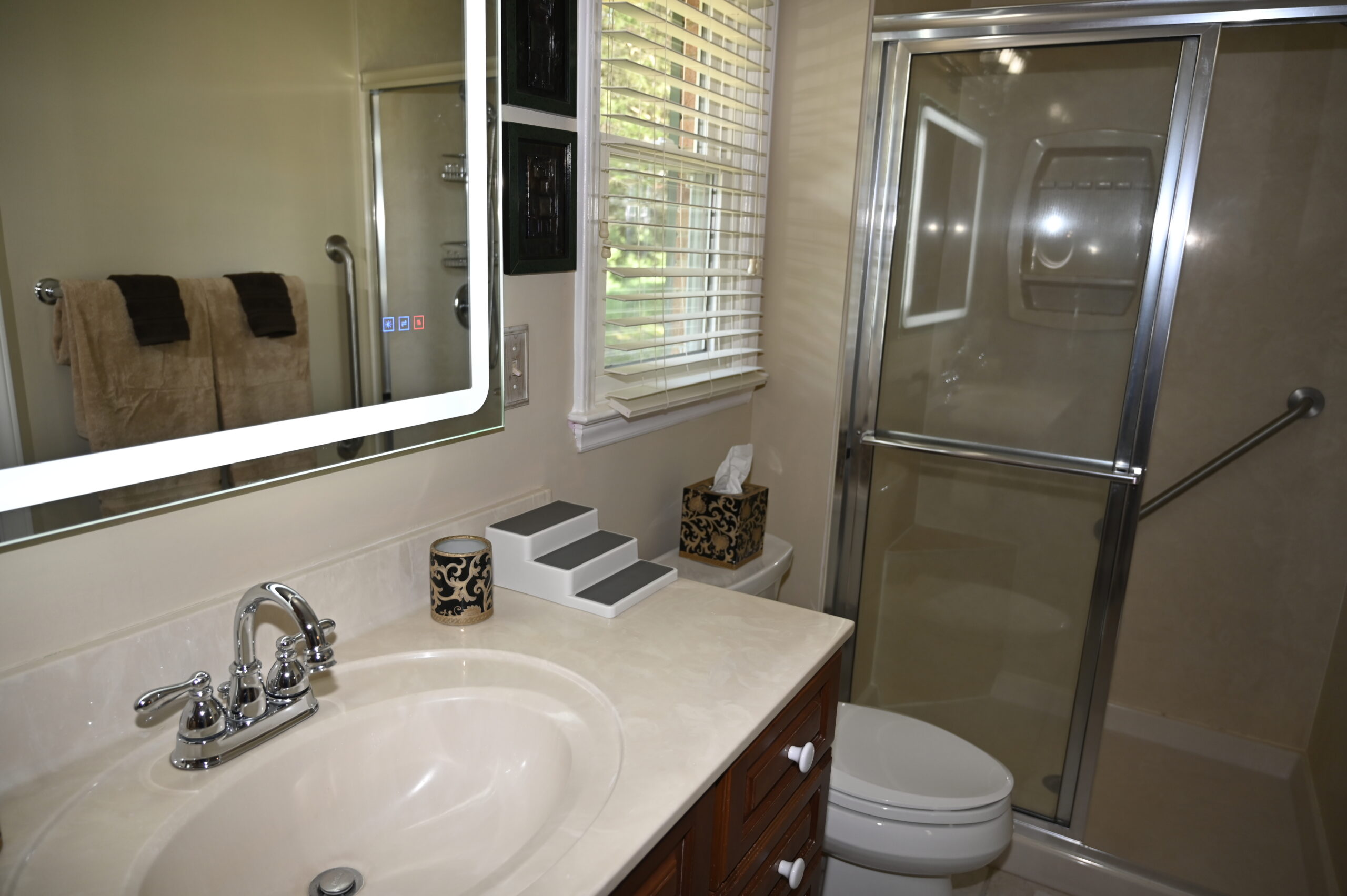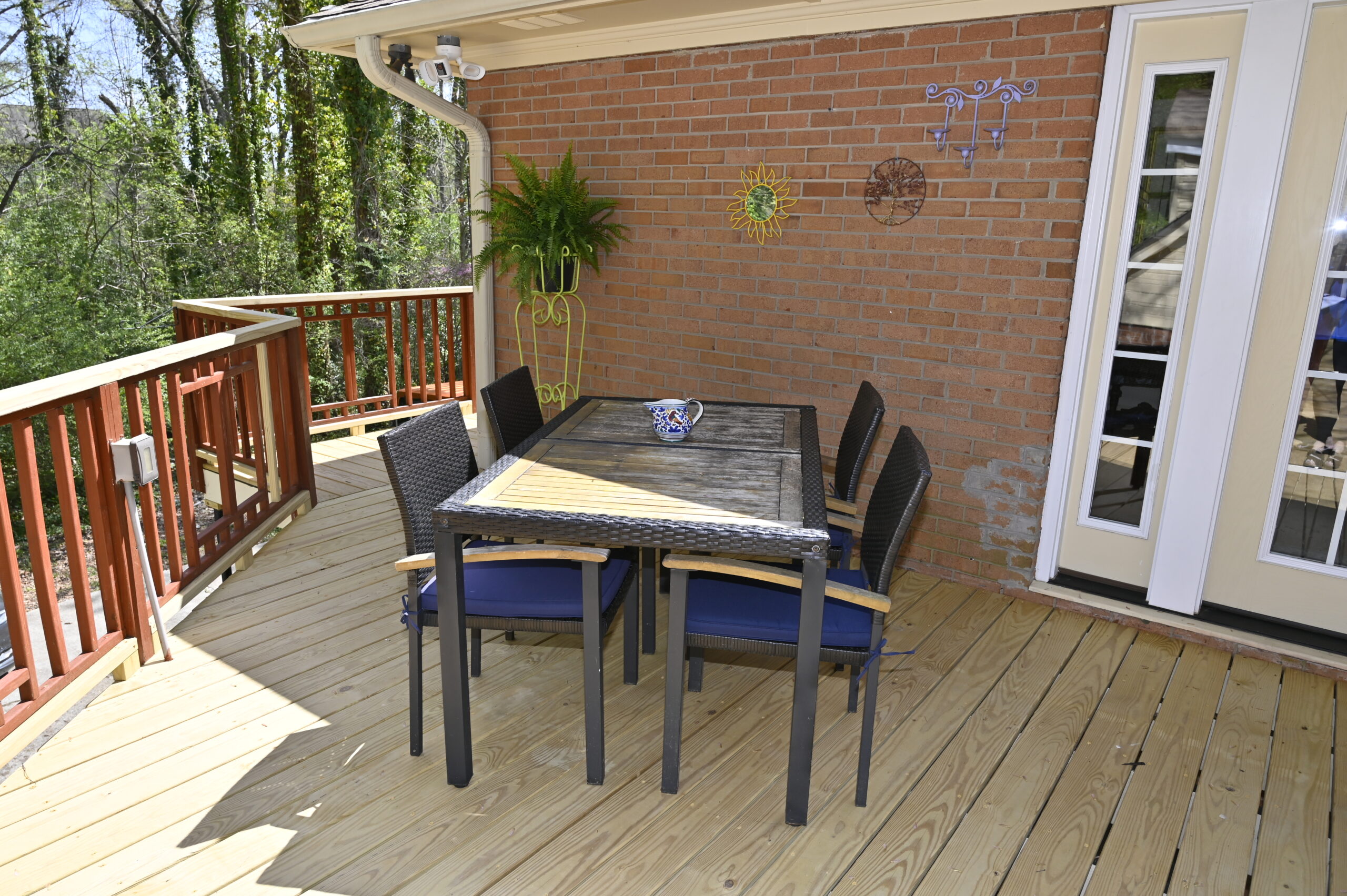 Description: $2150 Everything on one level. The den has a sofa and 65"TV. Kitchen with dining area. Primary Bedroom has KING bed, 65" TV. Full private bath. Bedroom 2 has a QUEEN bed, 50"TV. Bedroom 3 has a TWIN bed, 43"TV. Full bath in hall. Large multi-level deck with seating and gas grill.