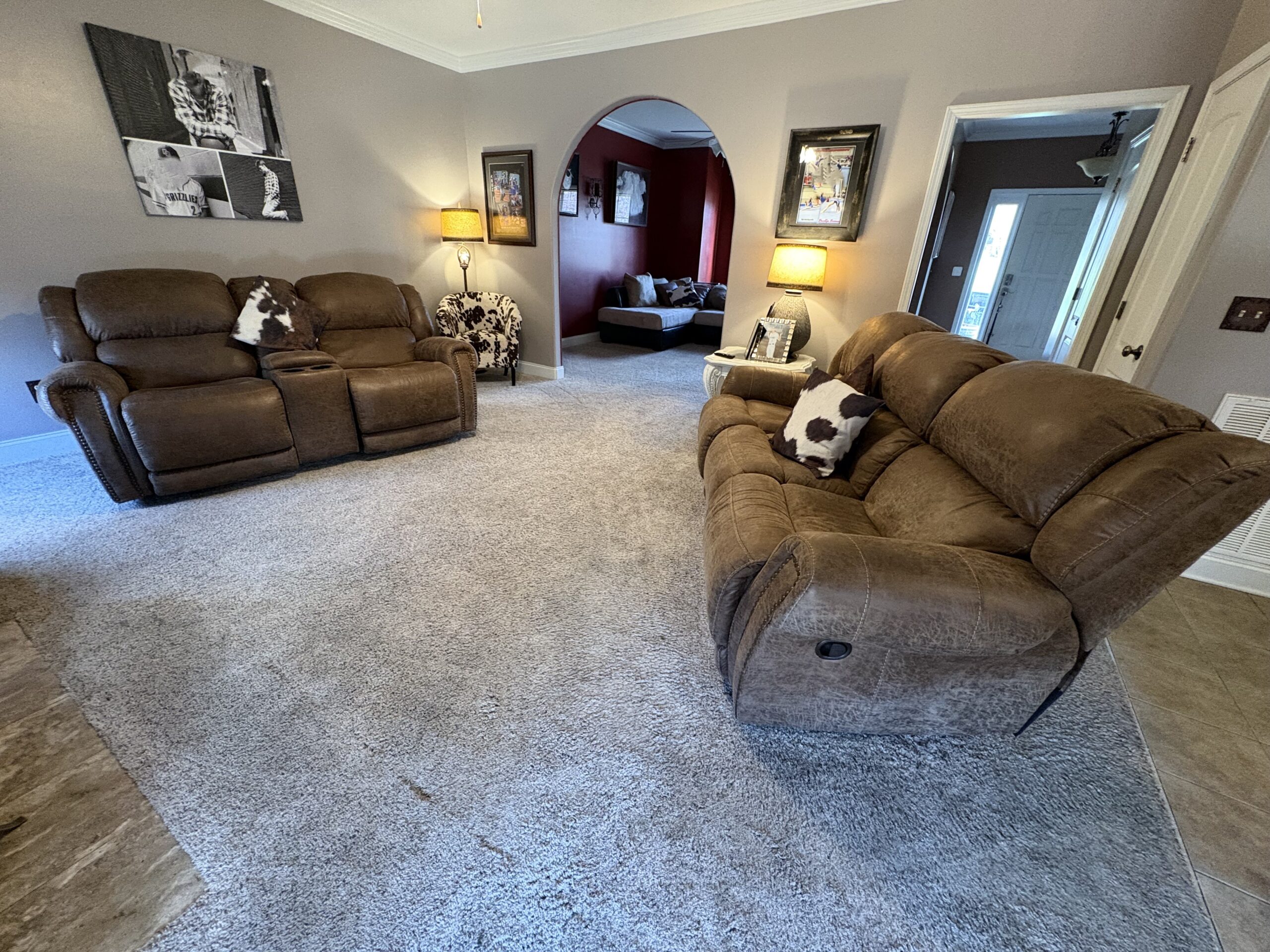 Description: $2250 Streaming TV Wireless Internet Pets (Black Lab) Main level of home has a living room, 75" TV, kitchen, half bath. The den has a sofa, chair, chaise and 42"TV. The deck has a gas grill and seating, firepit. The upper level has a KING bed, 32"TV and a full bath. The 2nd bedroom has a DOUBLE bed, 42" TV and the 3rd bedroom has a DOUBLE bed, 32"TV. The lower level of the home has a game room with a pool table, 50"TV,