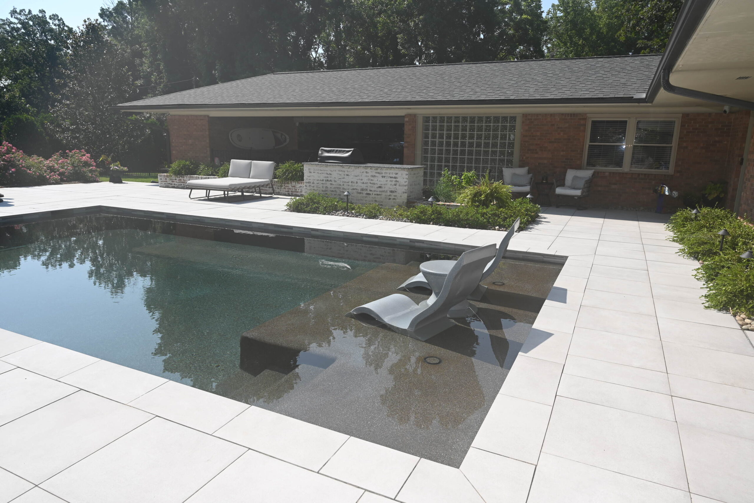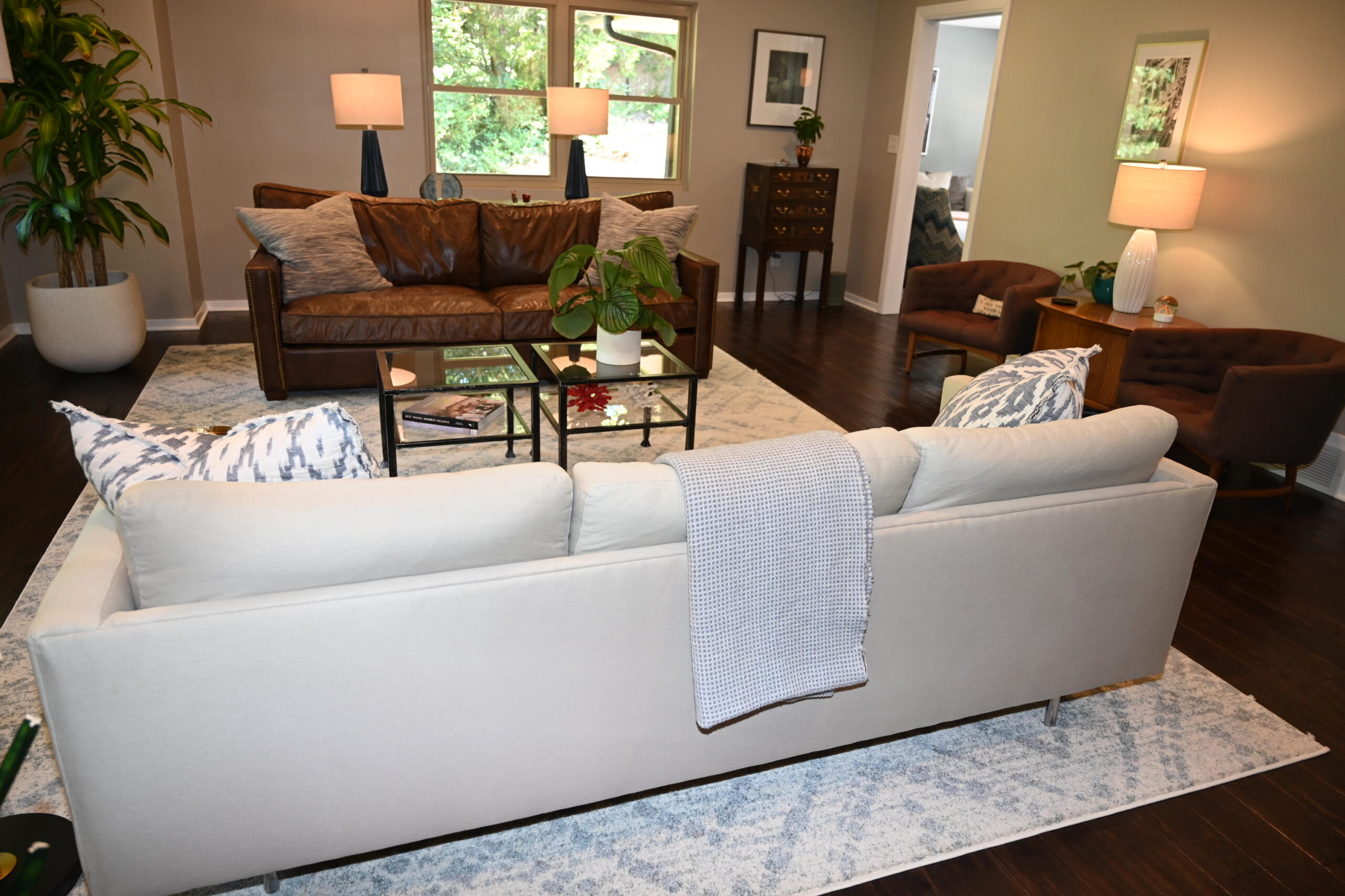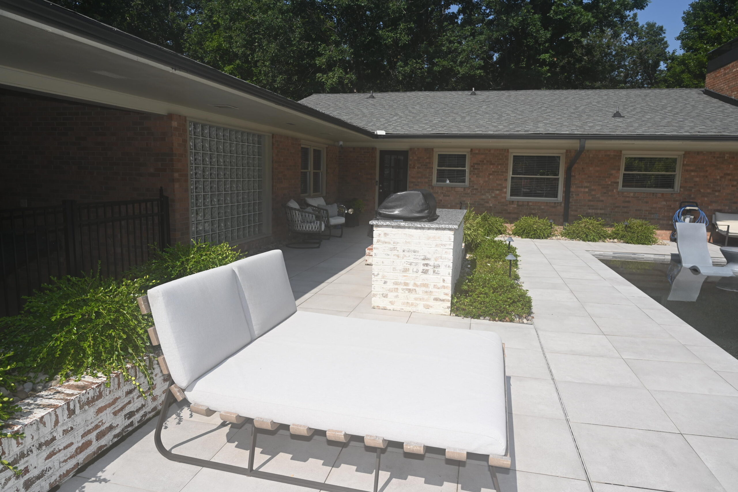 Description: $4425 6 nights maximum Updated in 2015 One level home. Den has sofa, 3 chairs and 55"TV. Living room has 2 sofas, 2 chairs. Eat in Kitchen. Dining Room. Primary bedroom has KING bed, 60"TV. Full private bath. Bedroom 2 has KING bed. Full private bath. Bedroom 3 has QUEEN bed. Half Bath. Bedroom 3 will have to enter Bedroom 2 for full bath access. Patio with Pool and seating.