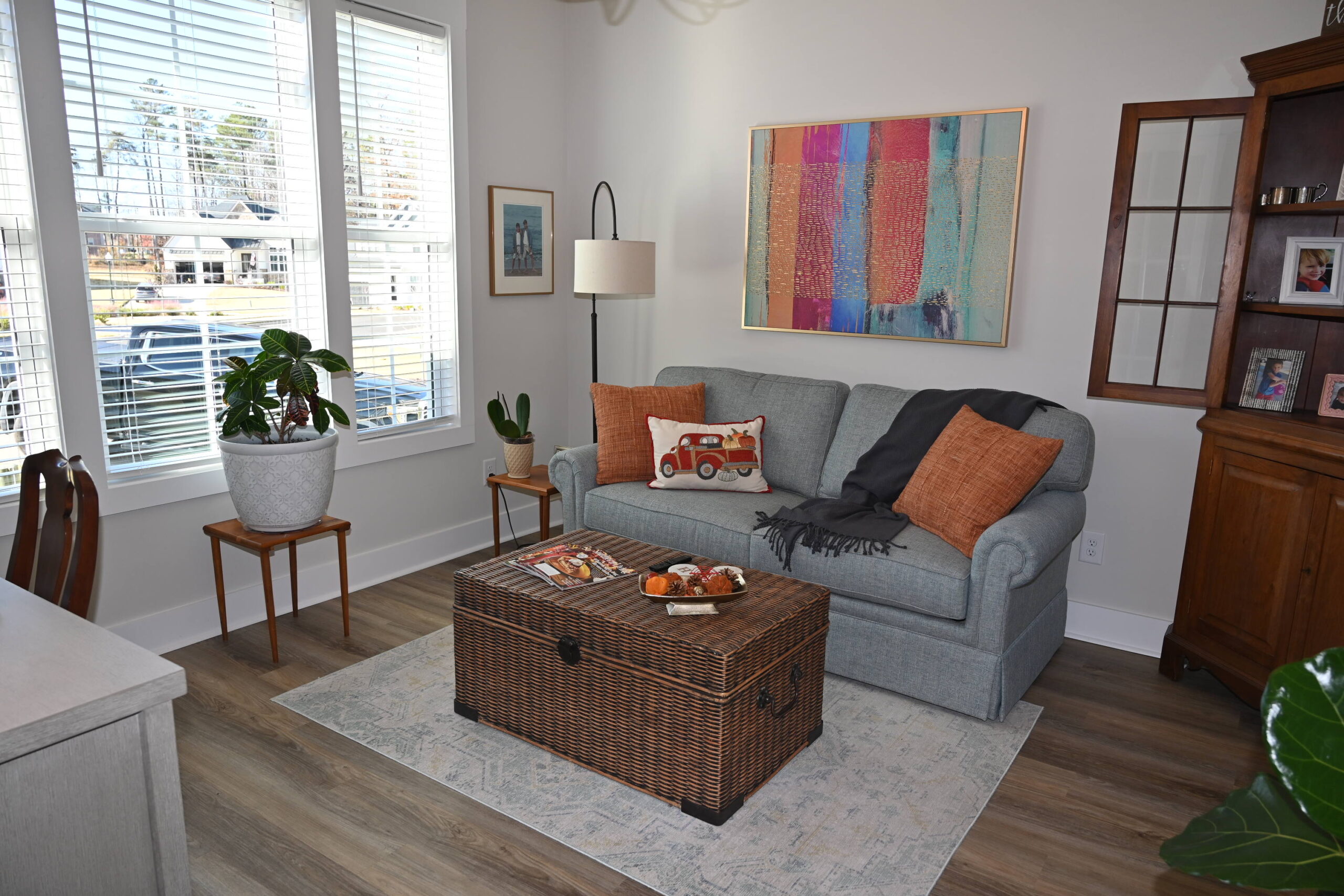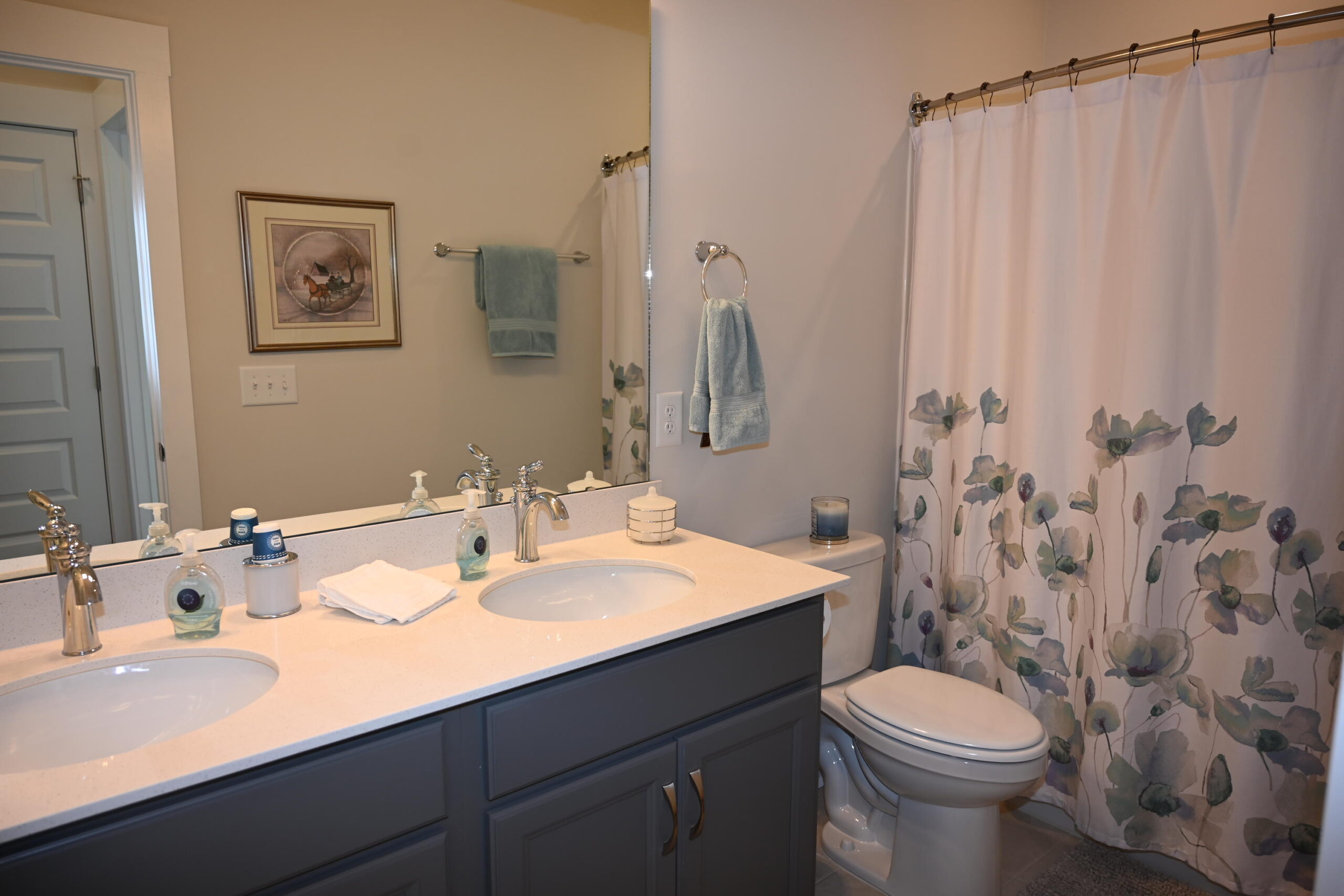 Description: $3000 Main level has Den with loveseat, 3 chairs, 2 ottomans and 60"TV. Kitchen with Dining area. Half bath. Office with desk and sofa, 50"TV. Primary Bedroom has QUEEN bed, 42"TV. Full private bath. Deck with gas grill and seating. Upper level has bedroom 2 with QUEEN bed, 22"TV. Bedroom 3 has QUEEN bed. Full bath in hall.