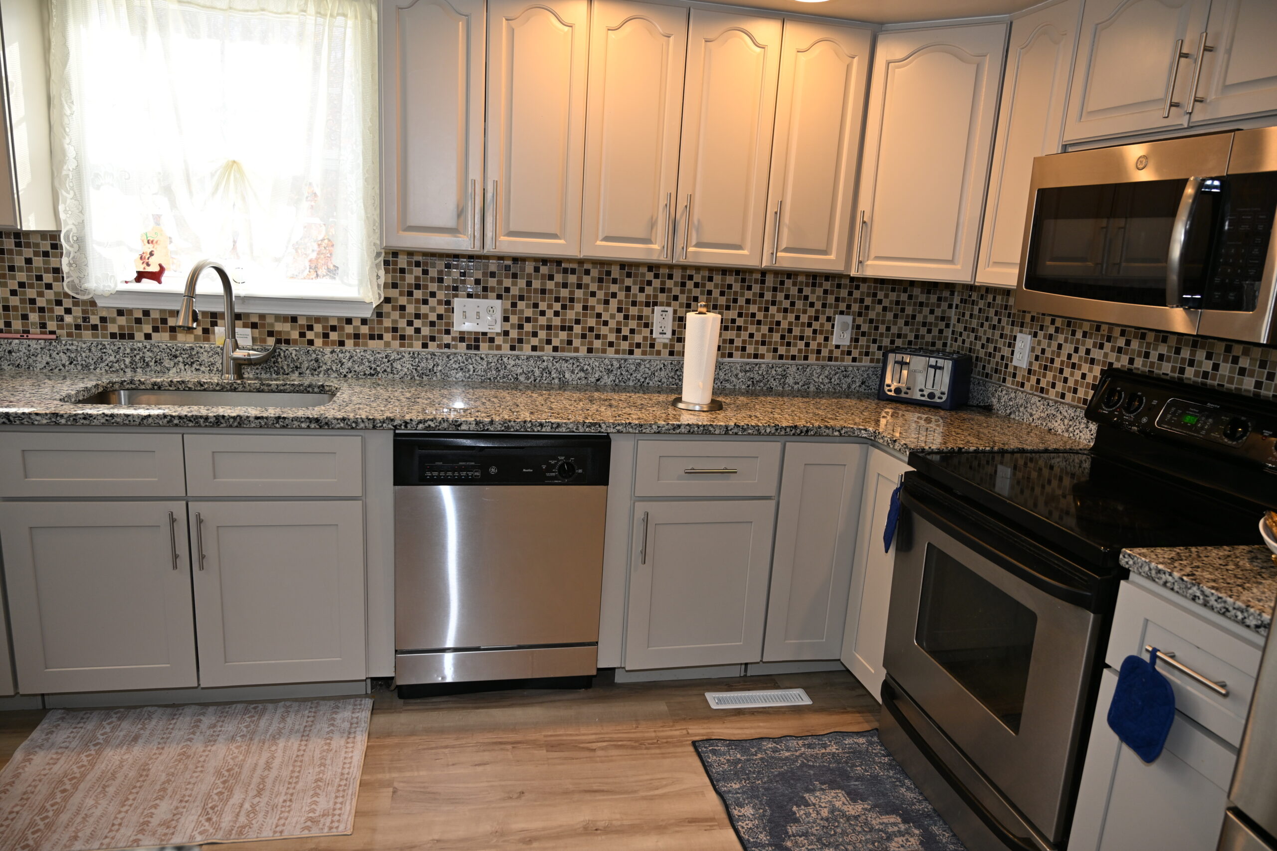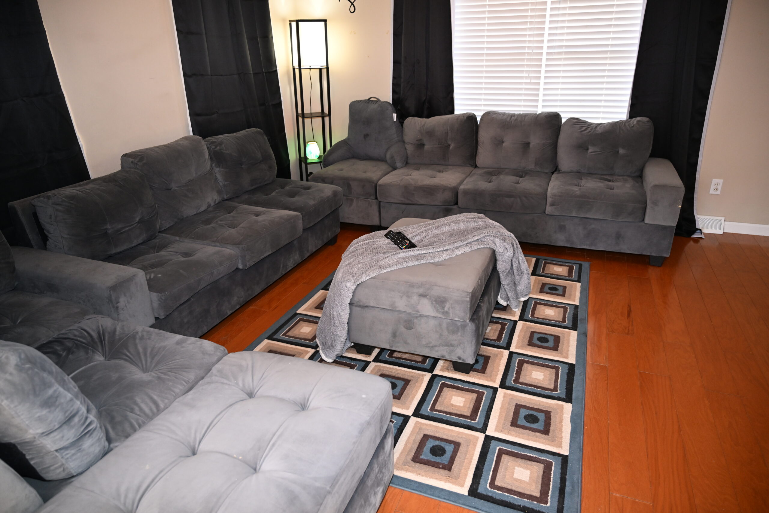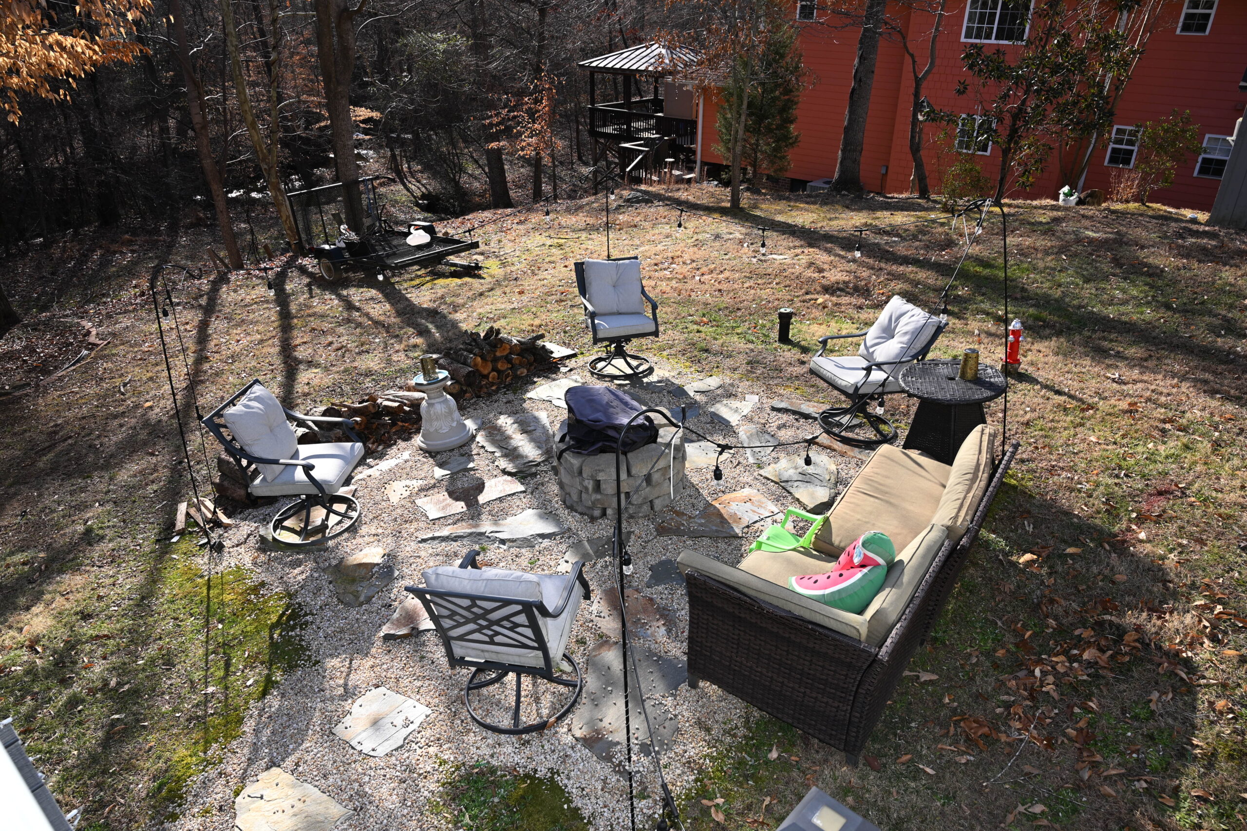 Description: $3100 - 7 night max Main level has den with 3 sofas, 50"TV. Living room with sofa, loveseat, chair. Dining room. Kitchen with bar seating and dining area. Half bath. Deck with gas grill and seating. Patio with firepit and seating. Upper level has primary bedroom with KING bed, 55"TV and full private bath. Bedroom 2 has QUEEN bed, 50"TV. Bedroom 3 has DOUBLE bed, 32"TV. Full bath in hall.