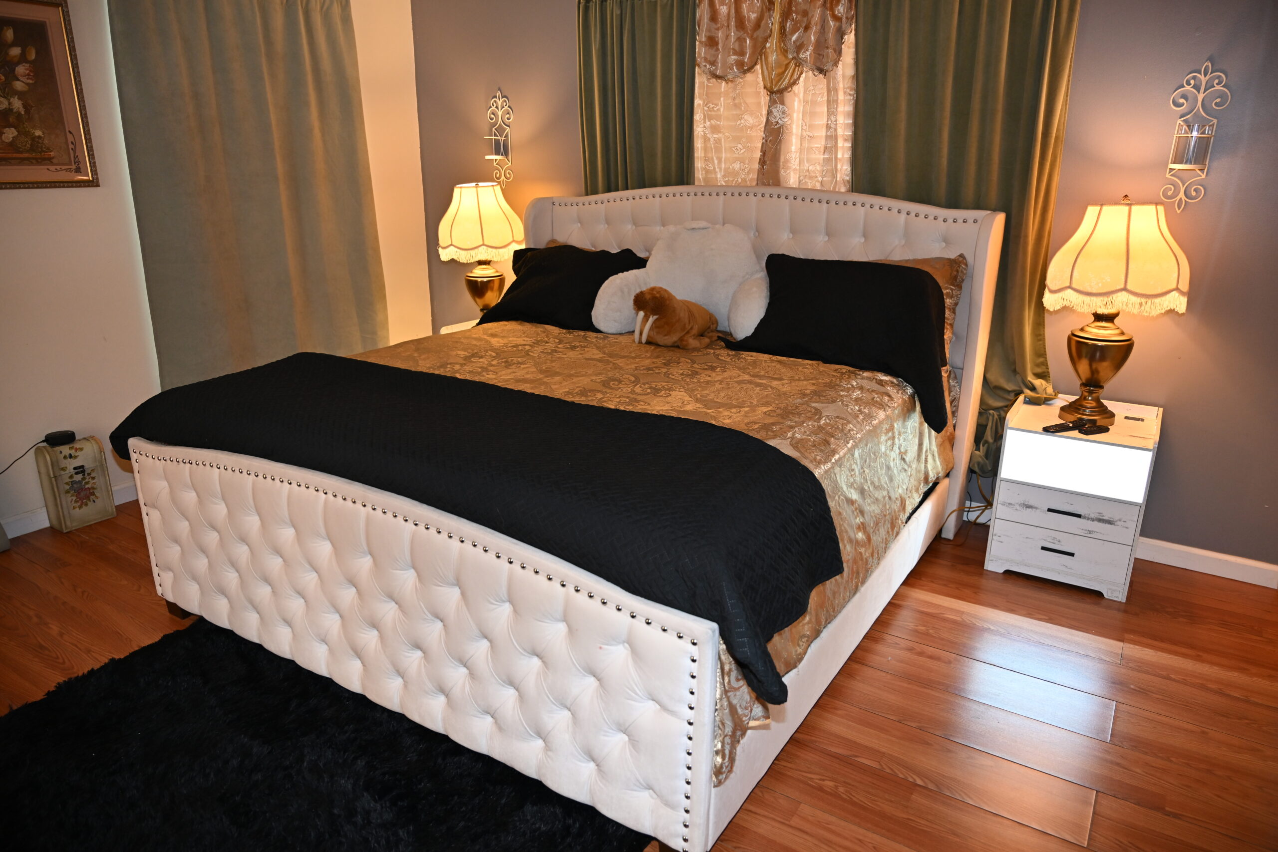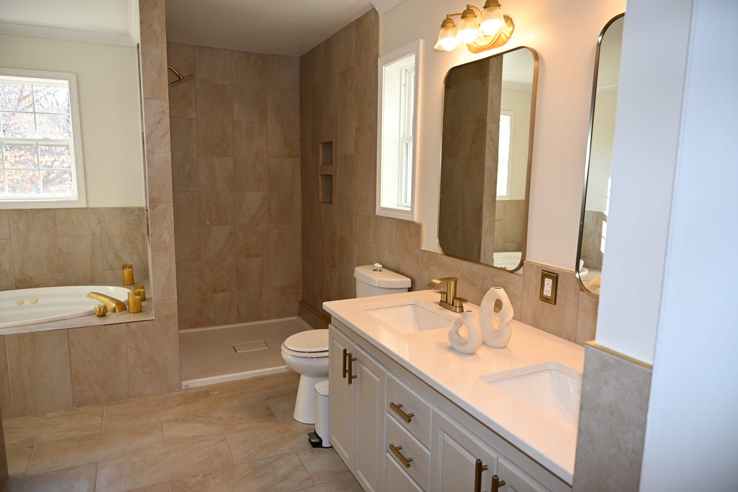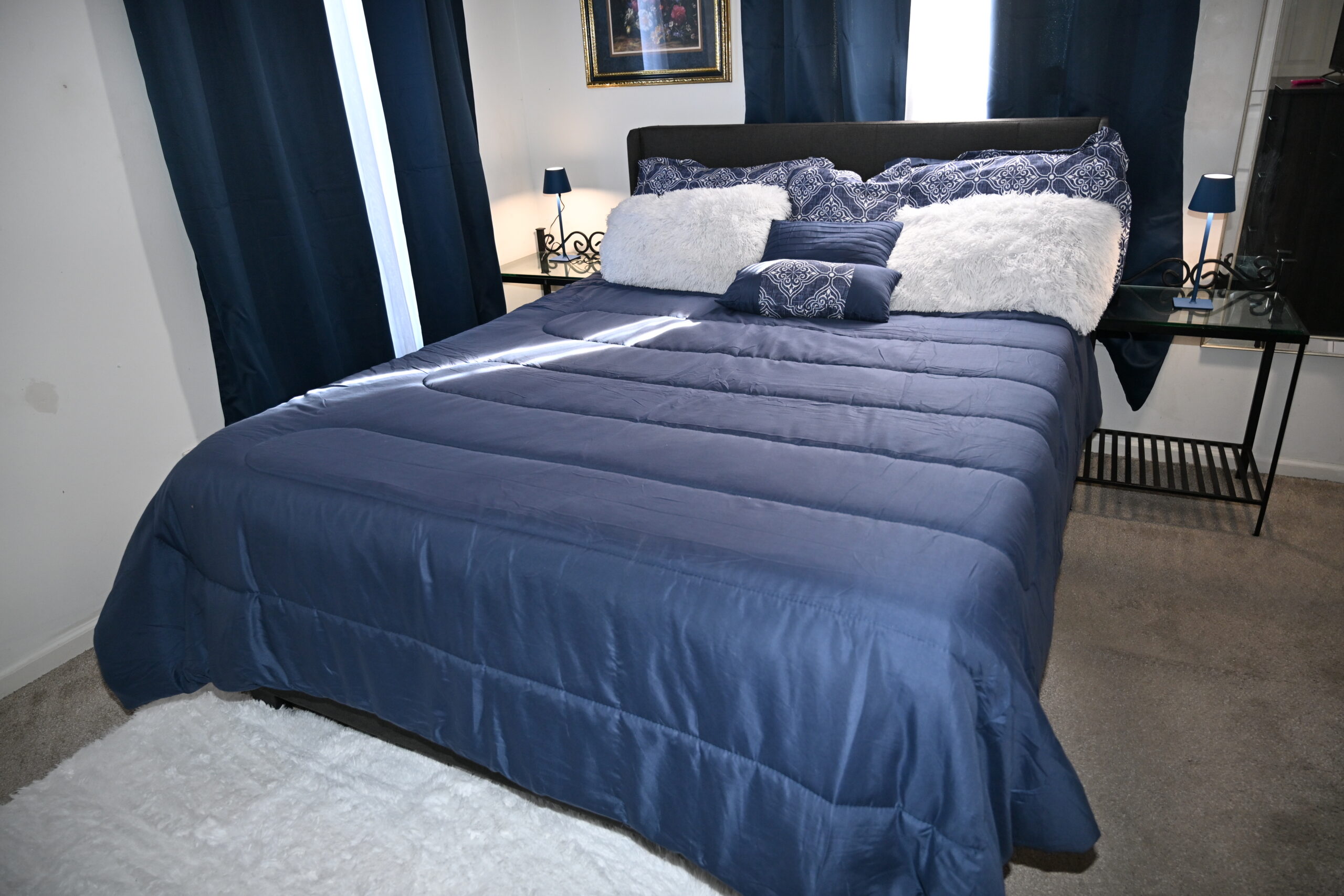 Description: $3100 - 7 night max Main level has den with 3 sofas, 50"TV. Living room with sofa, loveseat, chair. Dining room. Kitchen with bar seating and dining area. Half bath. Deck with gas grill and seating. Patio with firepit and seating. Upper level has primary bedroom with KING bed, 55"TV and full private bath. Bedroom 2 has QUEEN bed, 50"TV. Bedroom 3 has DOUBLE bed, 32"TV. Full bath in hall.