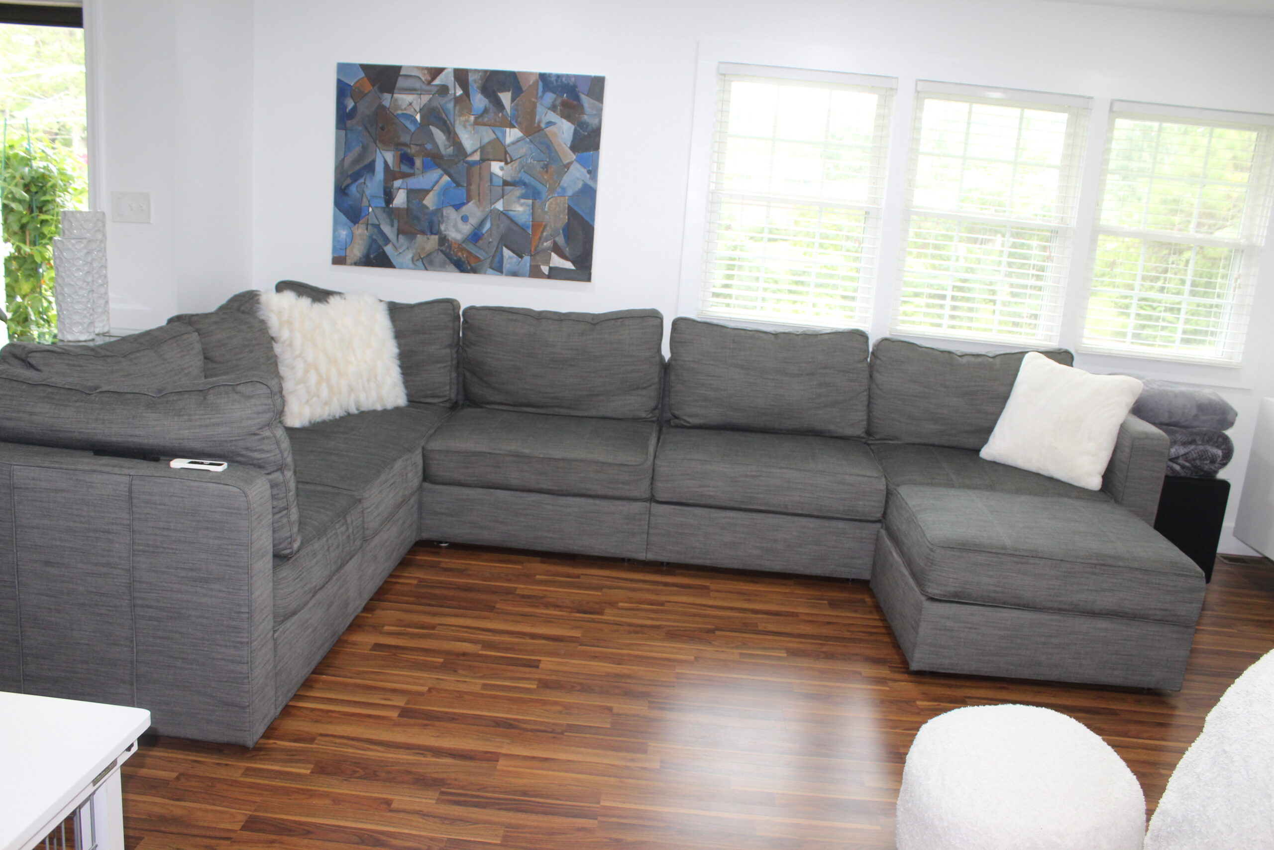 Description: $4450 Streaming TV Wireless Internet No Pets. Main level of home has New kitchen with 27" TV. Den with sectional and 75"TV. Bonus room with sofa, 2 chairs, 65"TV. Primary bedroom has KING bed, 55"TV and full bath. 2nd bedroom has QUEEN bed, 32"TV and full bath in the hall. 3rd bedroom has QUEEN bed, 48" TV and full bath in the hall. Patio with gas grill and charcoal grill with seating.