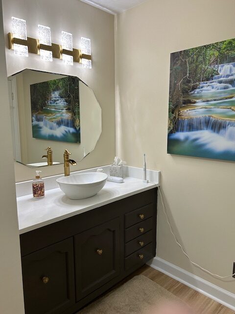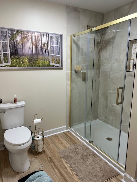 The lower level has the den with a sofa, loveseat and two chairs with a 55" TV plus a full bath.