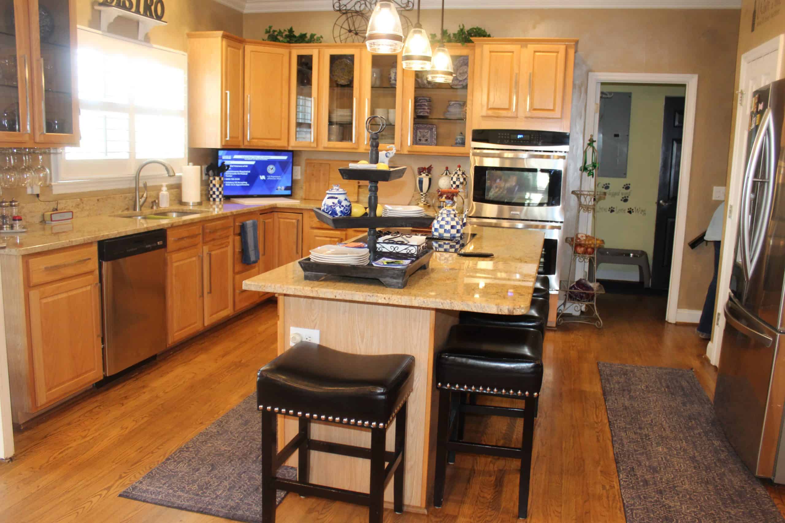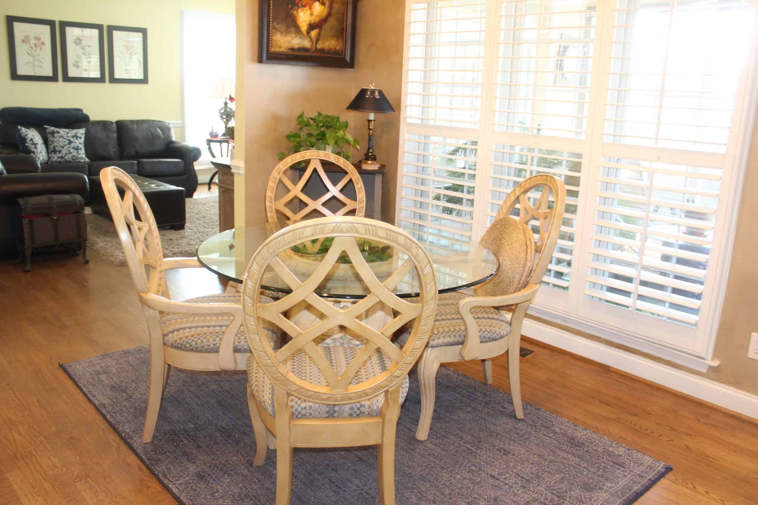 Description: $5000 Beautifully decorated Home Main level has the living room, dining room and kitchen. The den has a sofa, loveseat, chair and a 65" TV. The screened porch has 4 rocking chairs. The deck has a table / 6 chairs and smaller table / 4 chairs. There is also a large patio in the back of the yard with seating. The upper level of the home has the primary bedroom with a KING bed, 56" TV and large bath. The 2nd bedroom has a king bed, 32" TV and the 3rd bedroom has a QUEEN bed, 32" TV and full bath between the two rooms. The 4th bedroom has a QUEEN bed, 32" TV and full bath. Gym with treadmill, Eliptical, Pilate bench. Bonus room with sofa, chair and 42" TV.