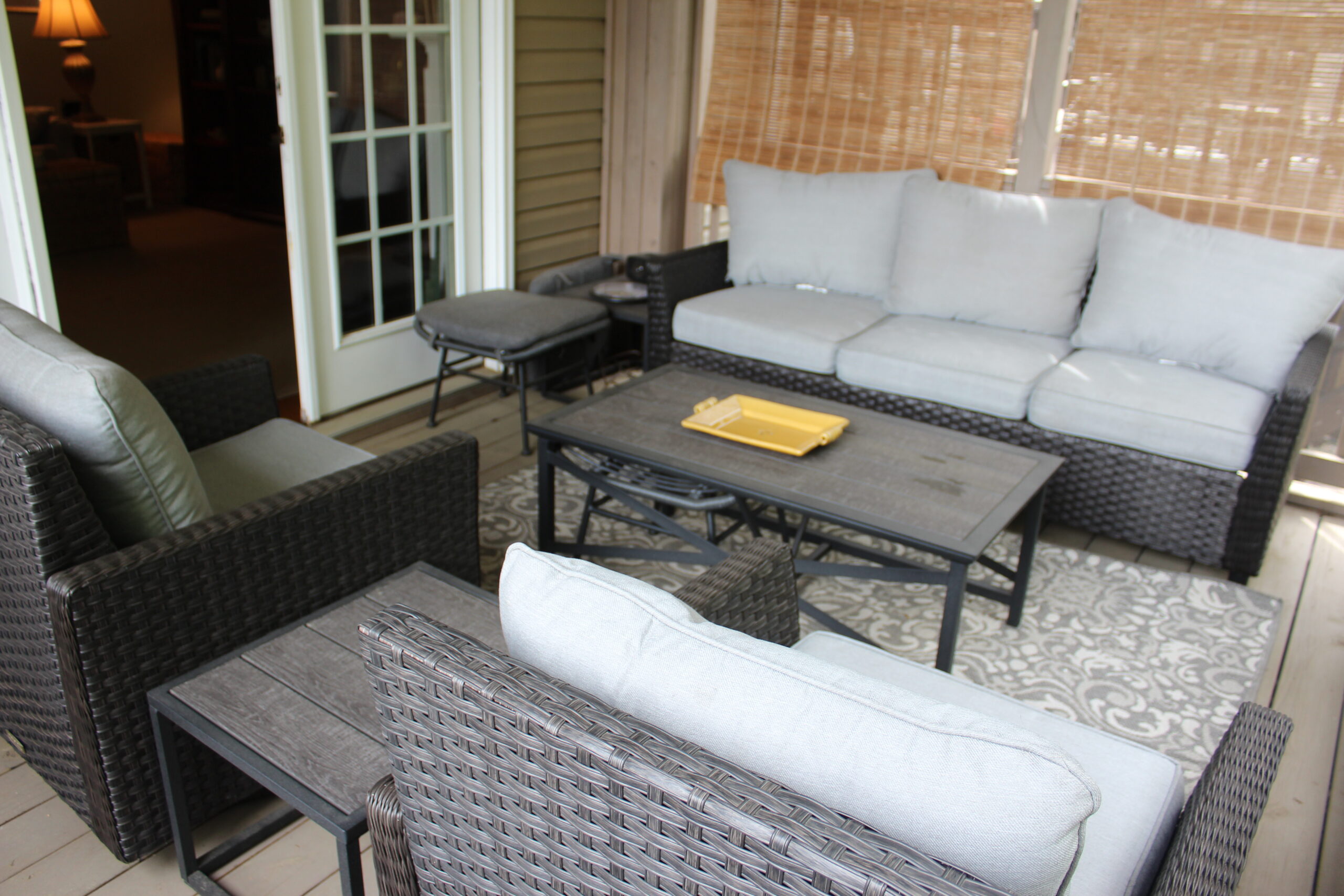 Description: $4000 Three level townhome. The main level has a kitchen. The den has seating with a TV. Screened porch has sofa and two chairs. The primary bedroom has a QUEEN bed and full bath. The 2nd bedroom has a FULL size bed and full bath in the hall. The upper level has a DOUBLE bed with a full private bath. The lower level has the 4th bedroom with a QUEEN bed and full bath in the hall. Den has a sectional with a 55" TV. The lower level patio has a charcoal grill.