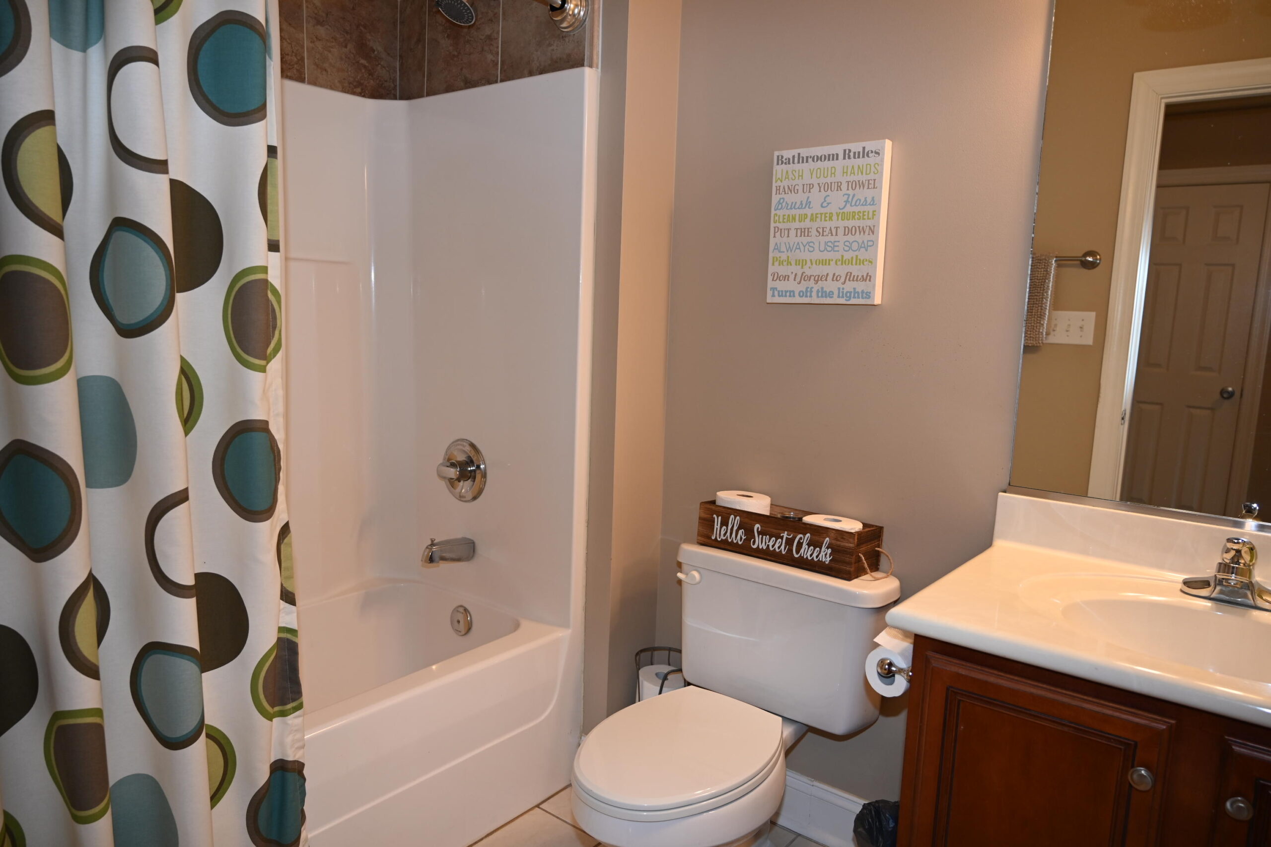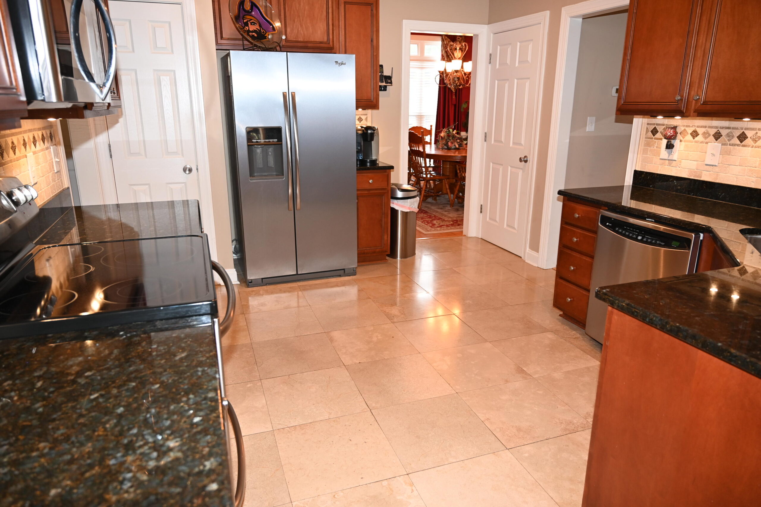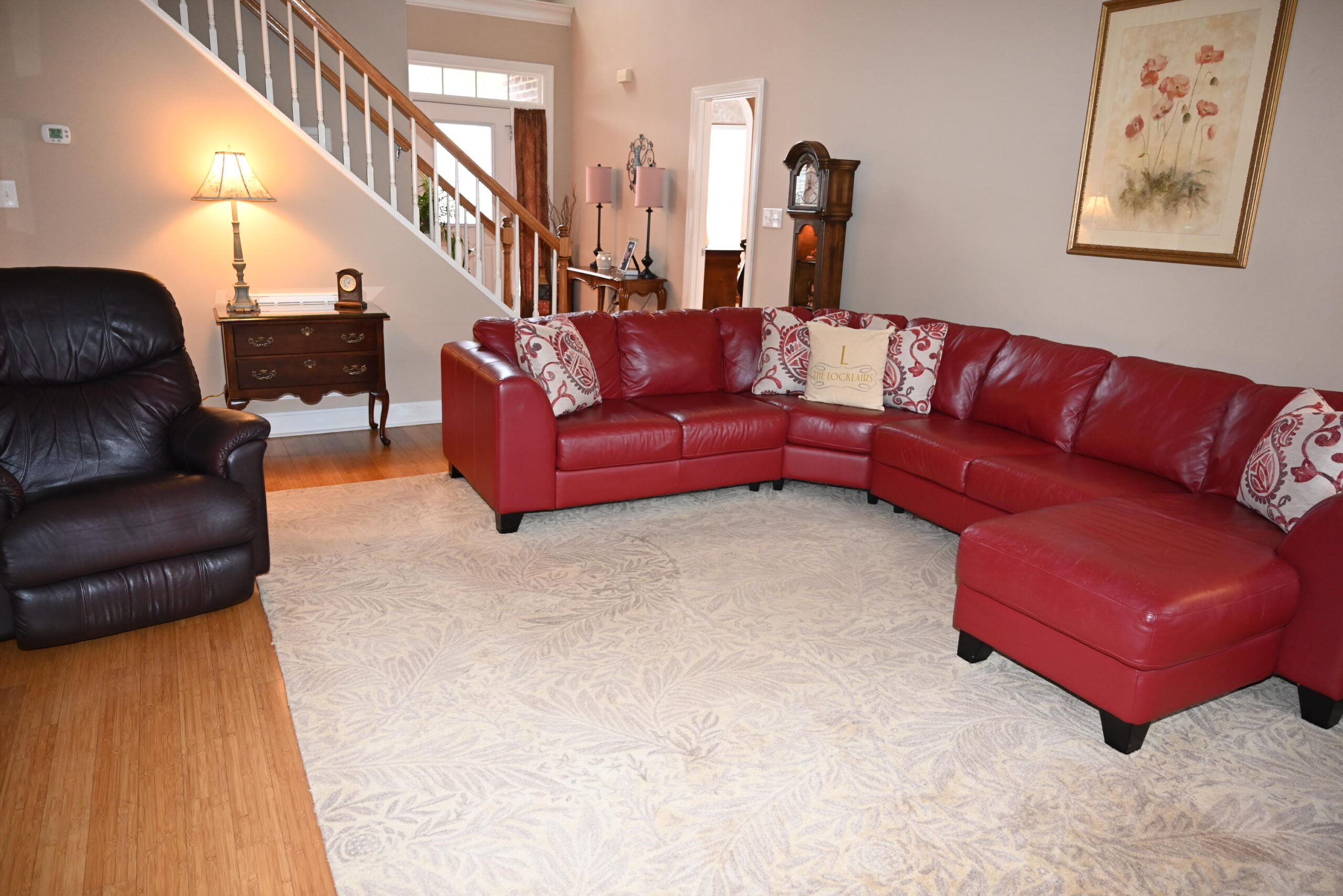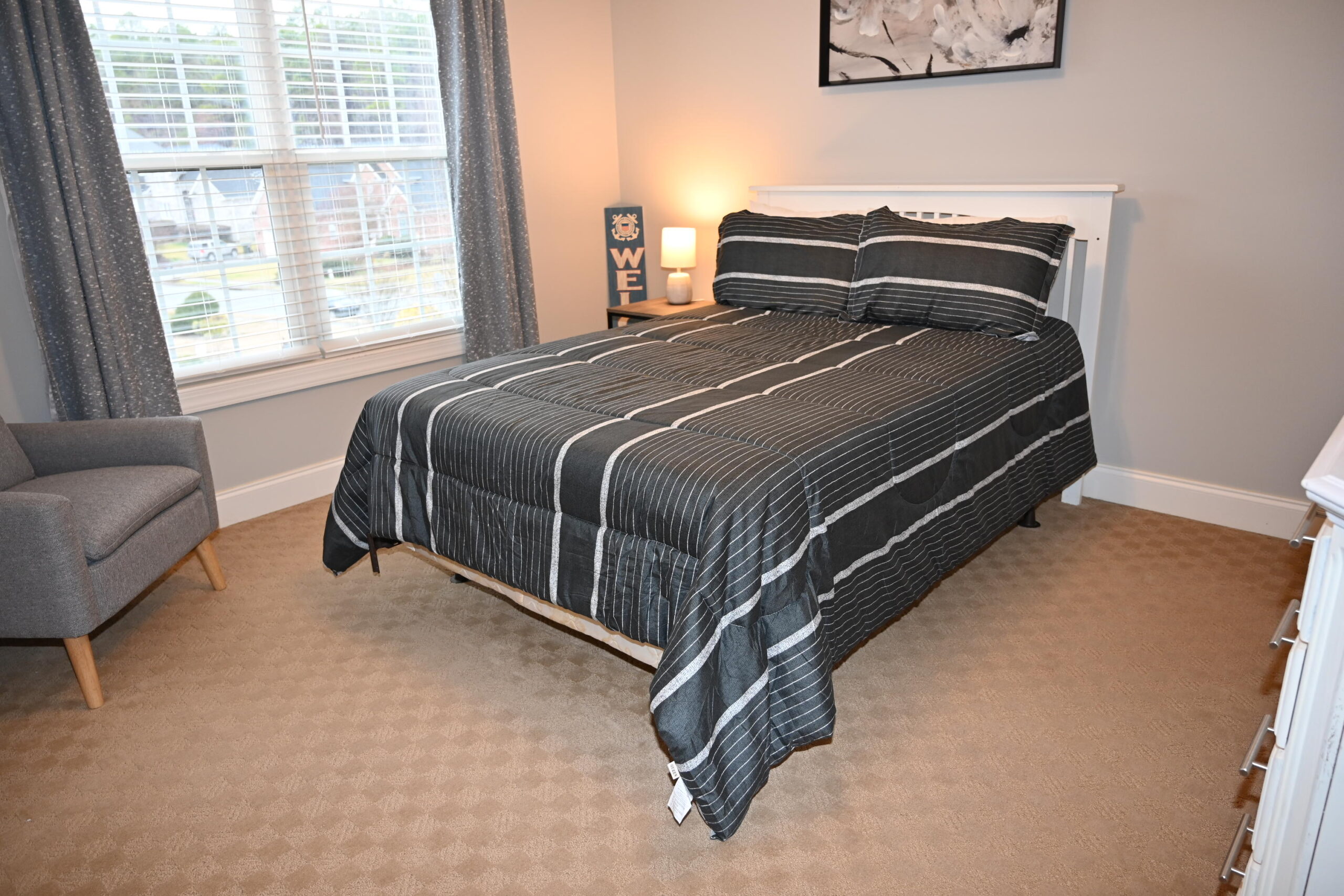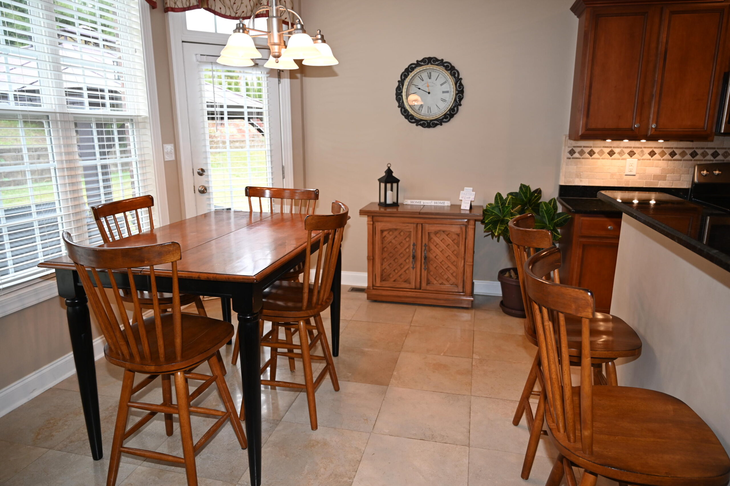 Description: $3875 The main level has a dining room and kitchen. The den has a sectional and recliner with a 55' TV. The primary bedroom has a QUEEN bed, 55" TV and private full bath. The 2nd bedroom has a DOUBLE bed and uses the half bath. The upper level has the 3rd bedroom with the DOUBLE bed, 32" TV. The 4th bedroom has a QUEEN bed and the 5th bedroom has a DOUBLE bed, 32" TV. Full bath in the hall. The patio has a Blackstone grill and seating.