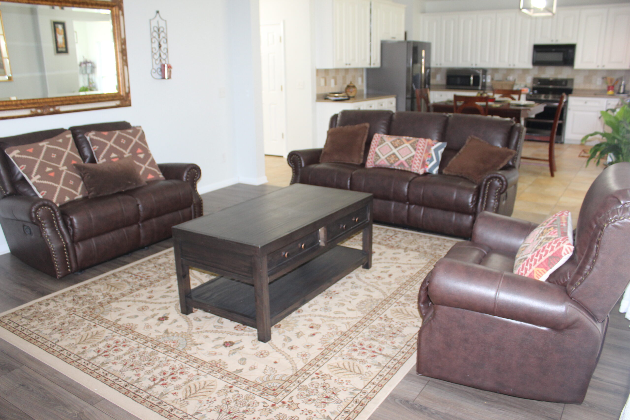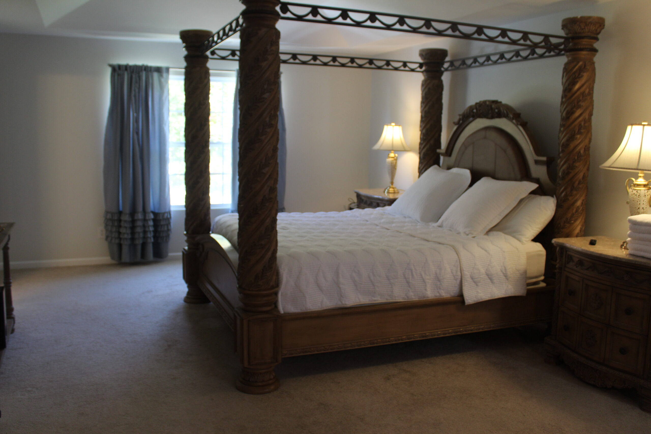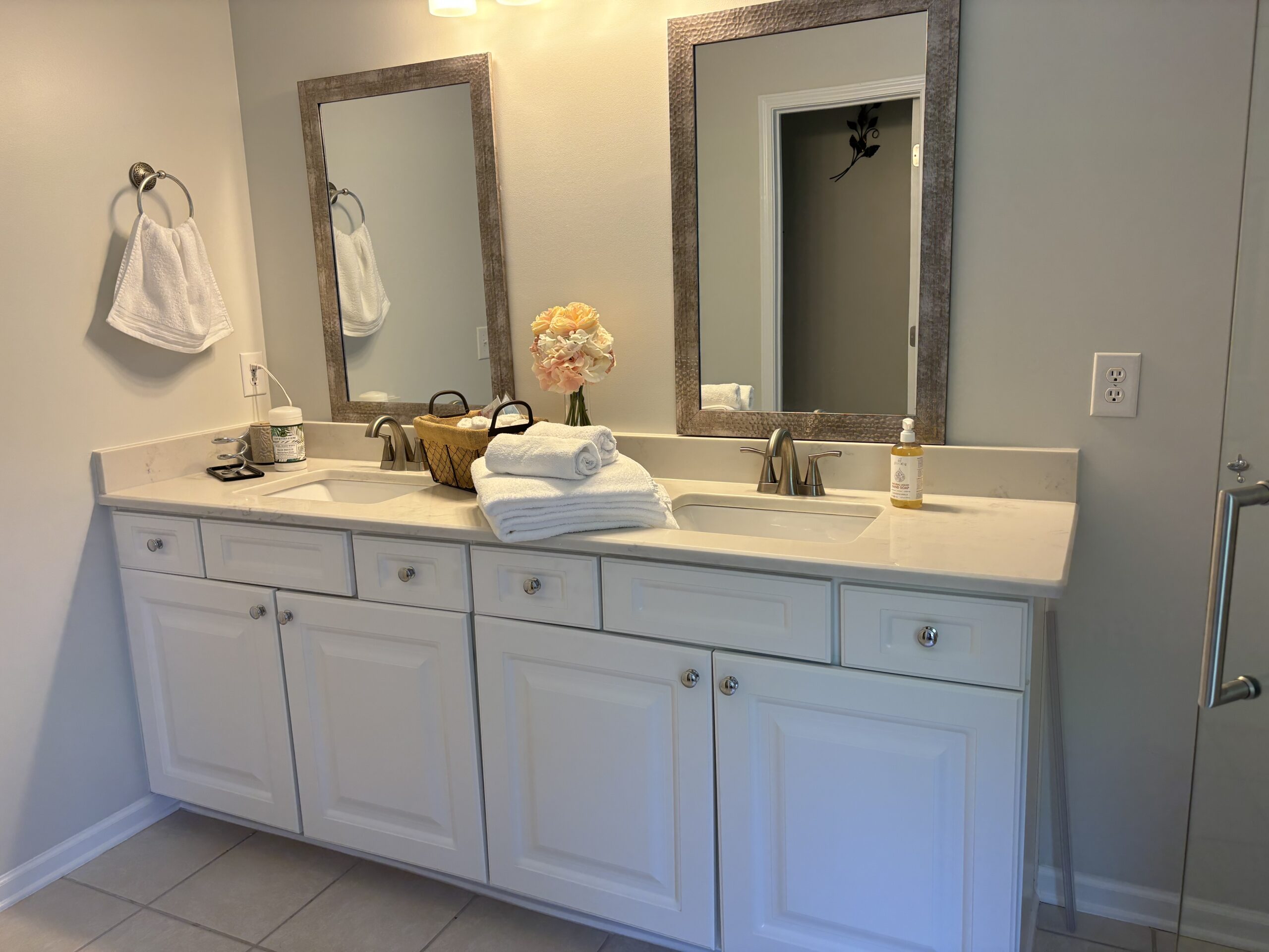 Description: $4900 Main level has dining room, kitchen, Sunroom. Den has sofa, love seat, 60"TV. Guest bedroom has QUEEN bed, 32"TV and full bath in the hall. Upper level has primary bedroom with KING bed, 32'TV and seating area, Full bath. 3rd bedroom has DOUBLE & QUEEN bed. 4th bedroom has QUEEN bed, 32"TV. 5th bedroom has QUEEN bed, 50"TV. Full bath in the hall.
