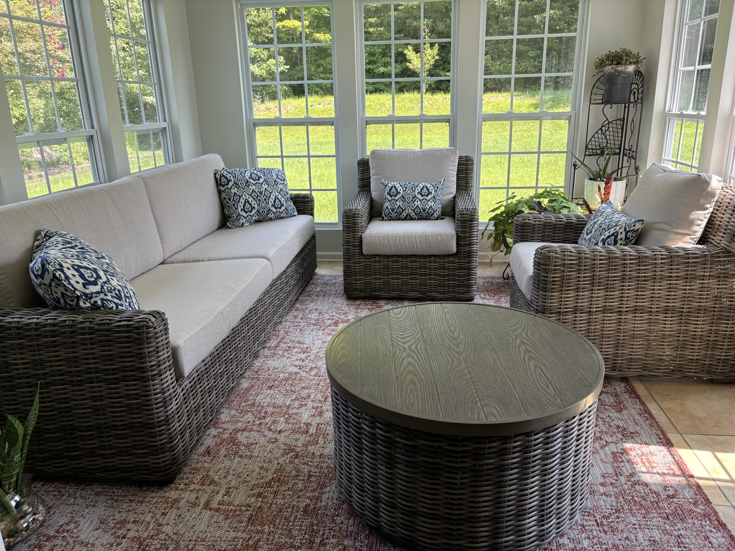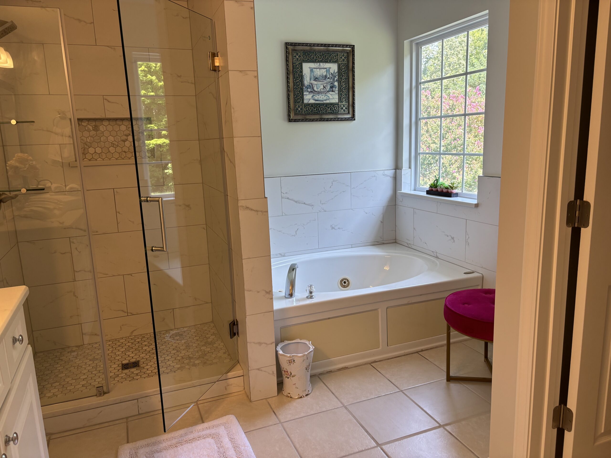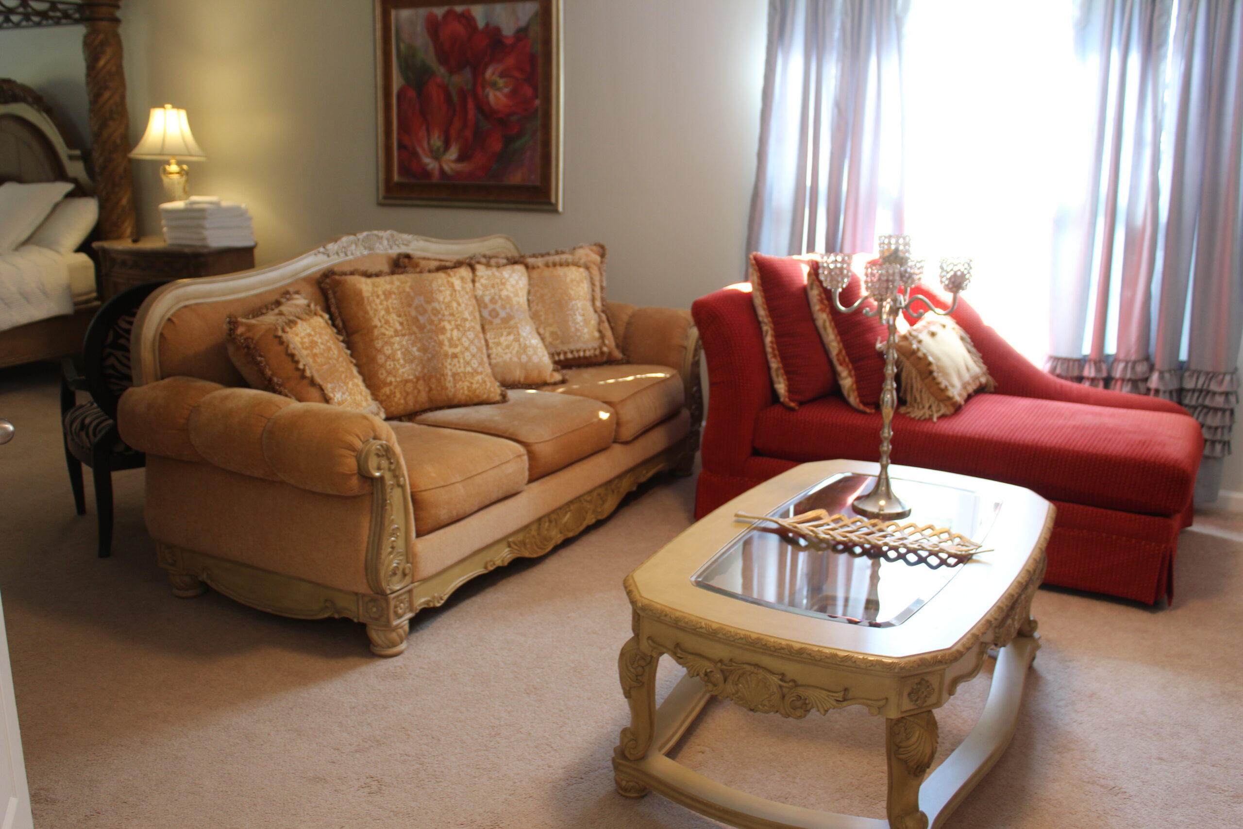 Description: $4900 Main level has dining room, kitchen, Sunroom. Den has sofa, love seat, 60"TV. Guest bedroom has QUEEN bed, 32"TV and full bath in the hall. Upper level has primary bedroom with KING bed, 32'TV and seating area, Full bath. 3rd bedroom has DOUBLE & QUEEN bed. 4th bedroom has QUEEN bed, 32"TV. 5th bedroom has QUEEN bed, 50"TV. Full bath in the hall.