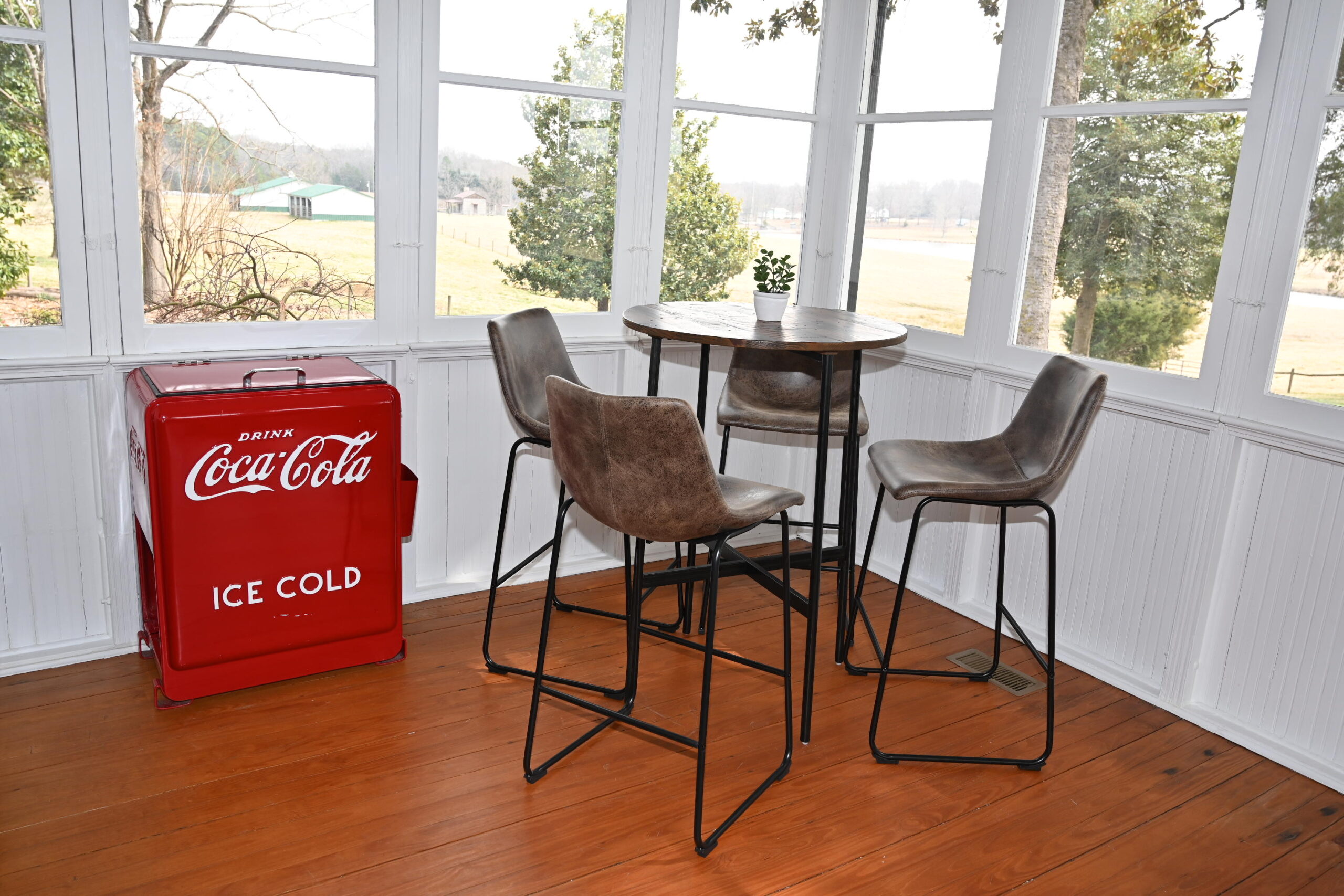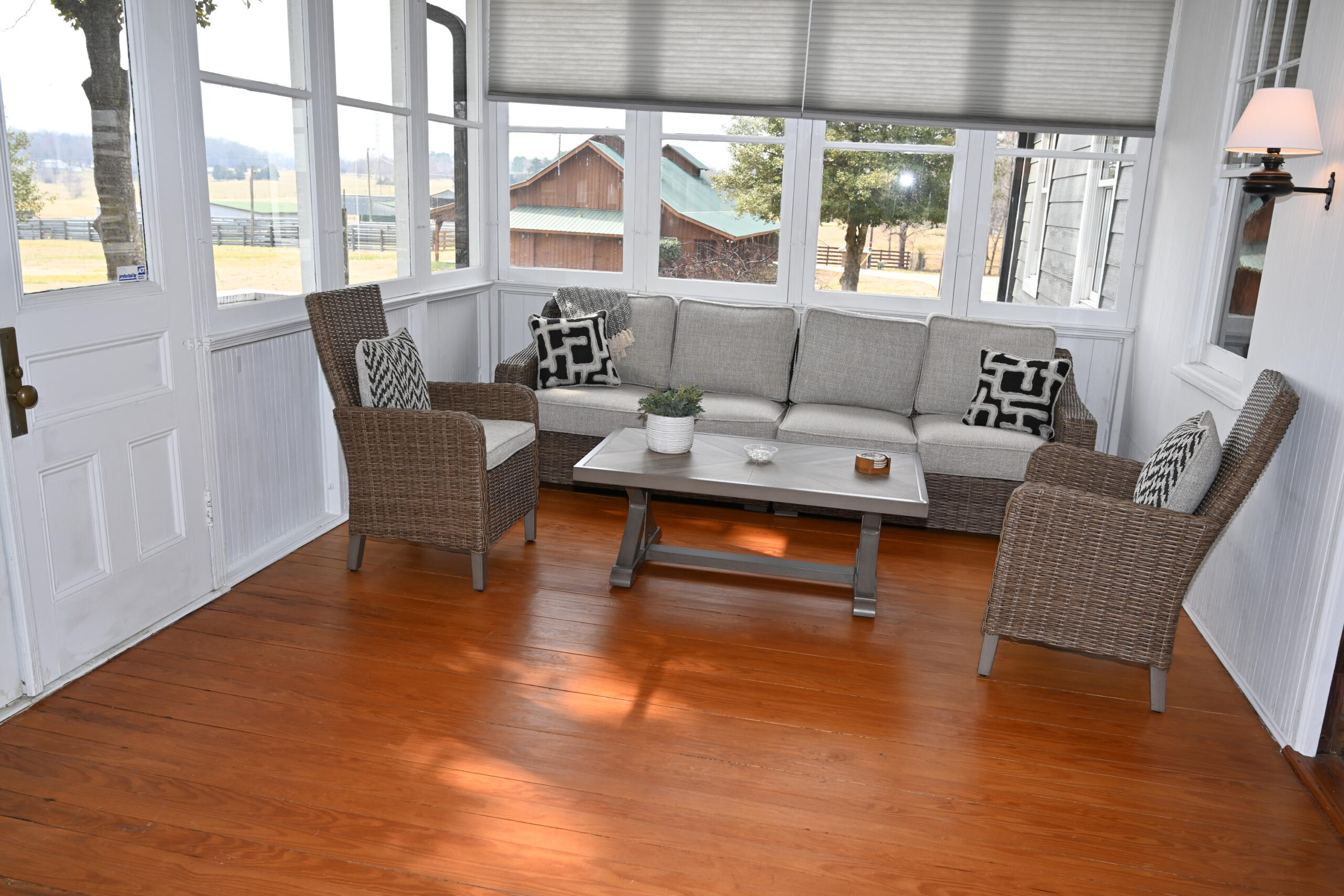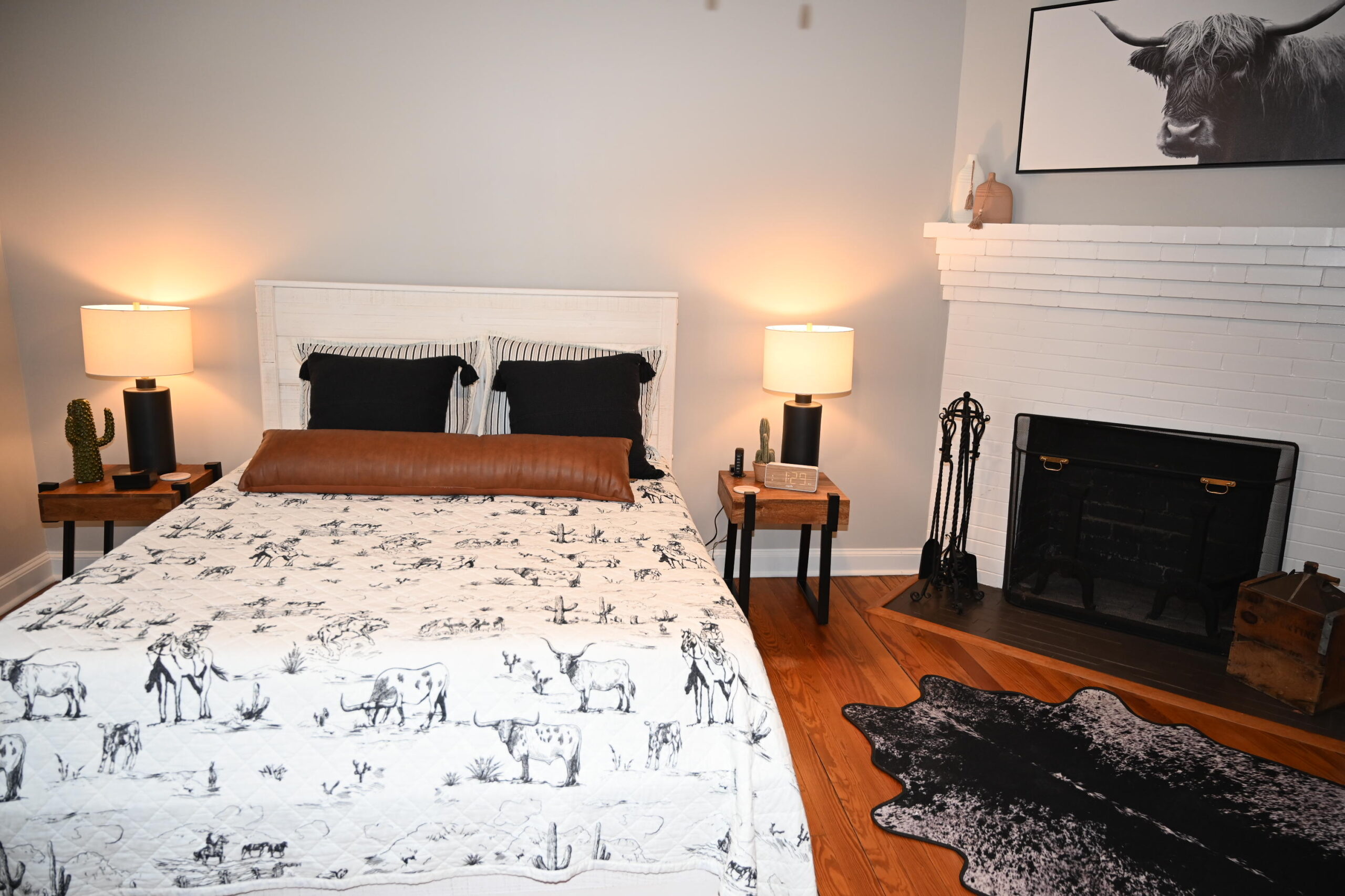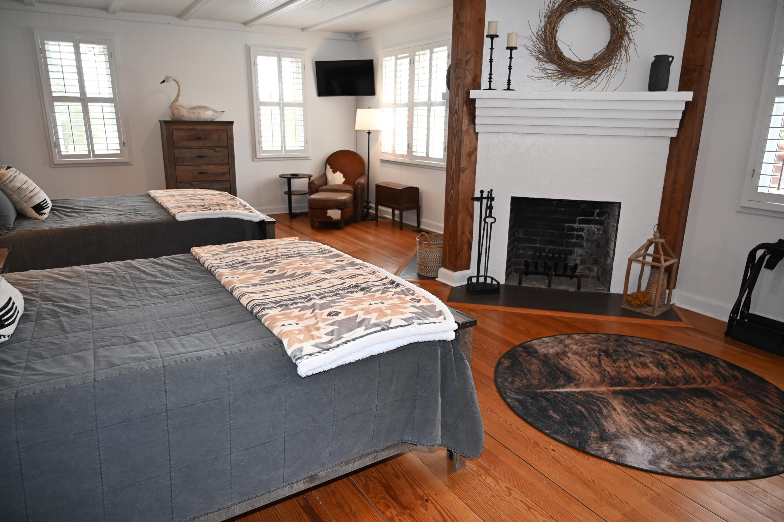 Description: $4225 Renovated home located on beautiful farm property. One level home with den, living room with 40" TV, bonus room, sunroom, and kitchen. Patio with seating and gas grill. Primary bedroom has TWO QUEEN beds, 42" TV, private bathroom. Bedroom 2 has QUEEN bed, 42" TV. Bedroom 3 has DOUBLE bed and a TWIN bed. Bathroom between bedrooms 2 and 3. Bedroom 4 has TWIN bed. Bedroom 5 has TWIN bed. Bathroom in the hall.