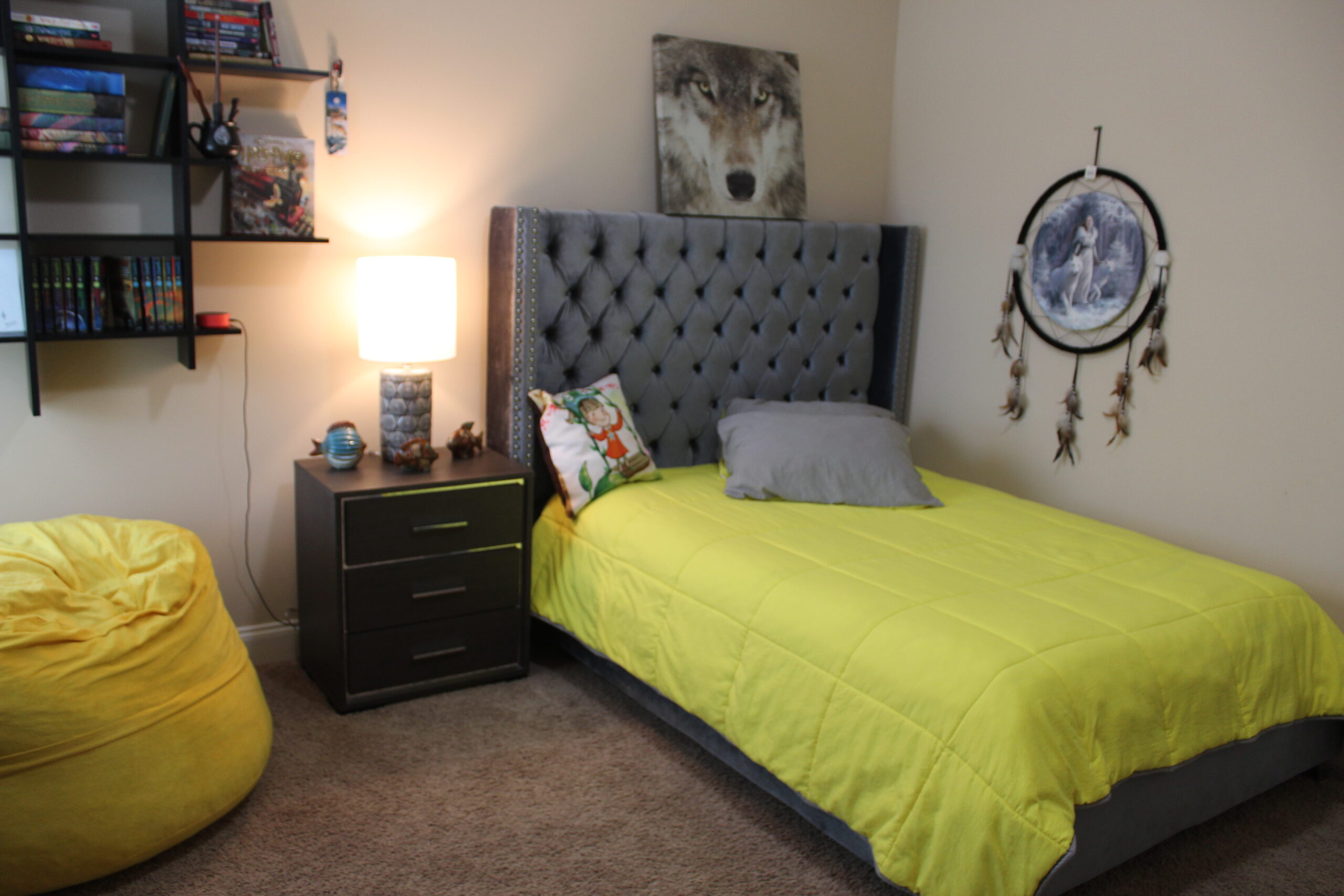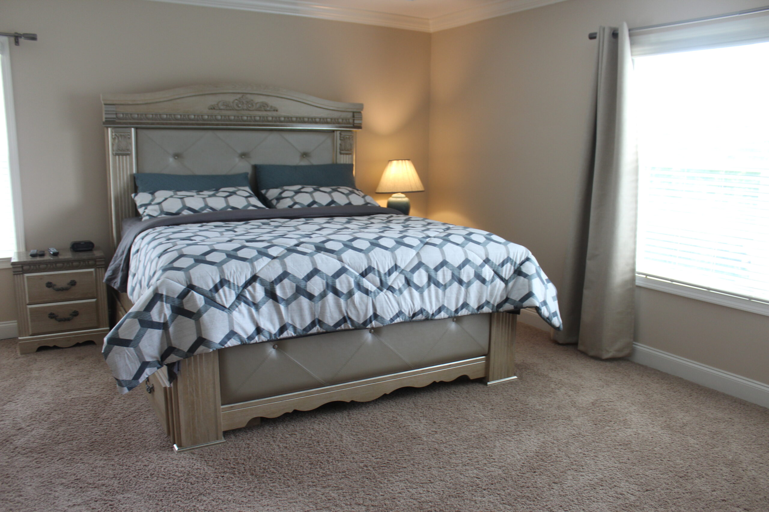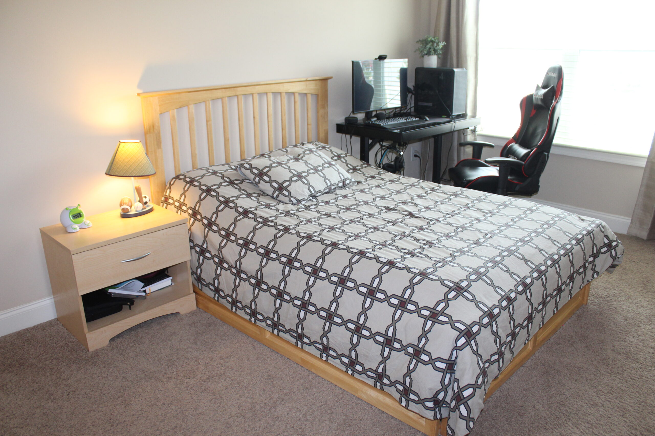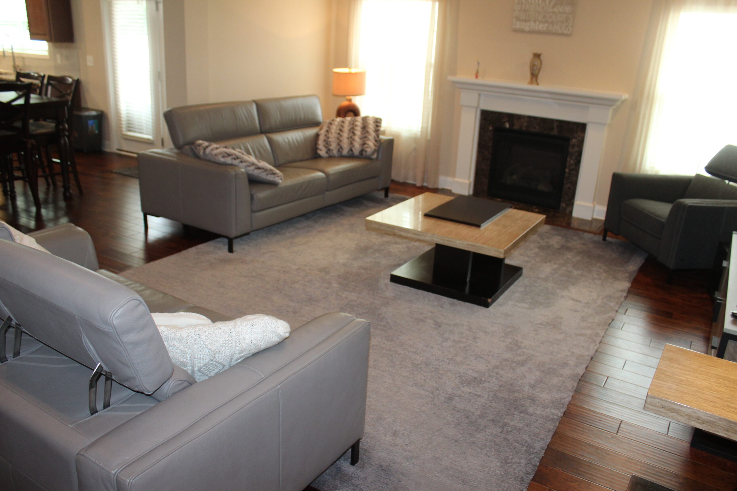 Description: $6500 Two-level home in north High Point. The main level has a dining room and a kitchen. One guest bedroom with a FULL-size bed and a full bath in the hall. The den has a sofa, loveseat, chair, and a 60" TV.