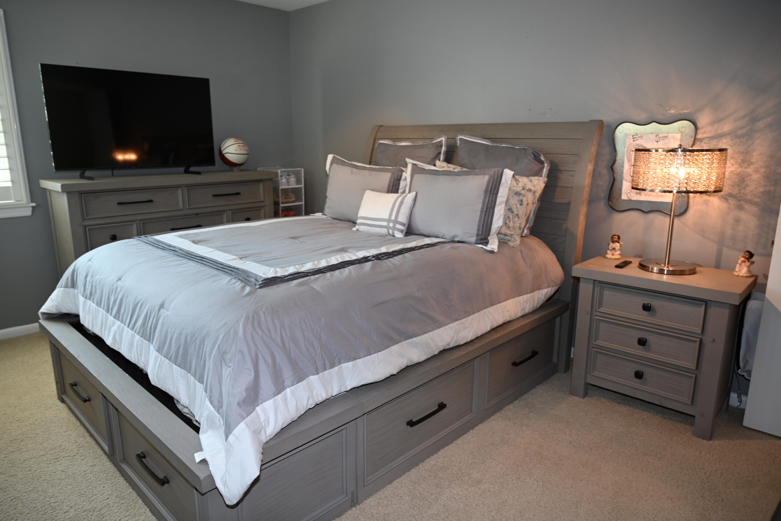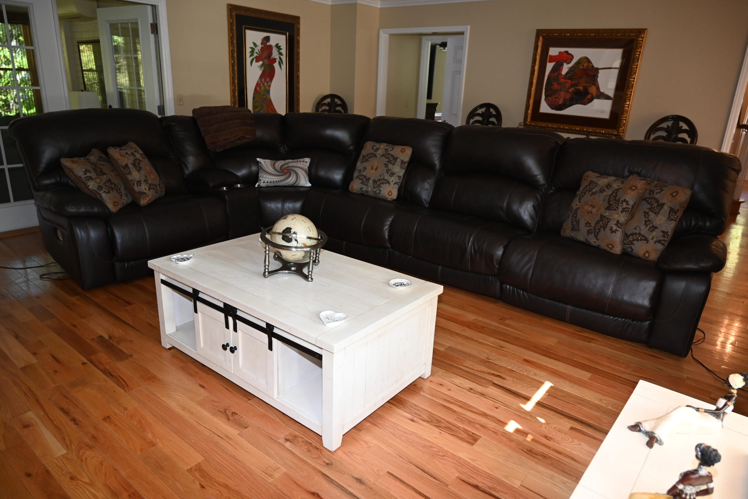 Upper level has Bedroom 2 with QUEEN bed. Bedroom 3 with QUEEN bed. Full bath in hall. Bedroom 4 with QUEEN bed, 60"TV. Bedroom 5 with QUEEN bed, 32"TV. Full bath in hall.