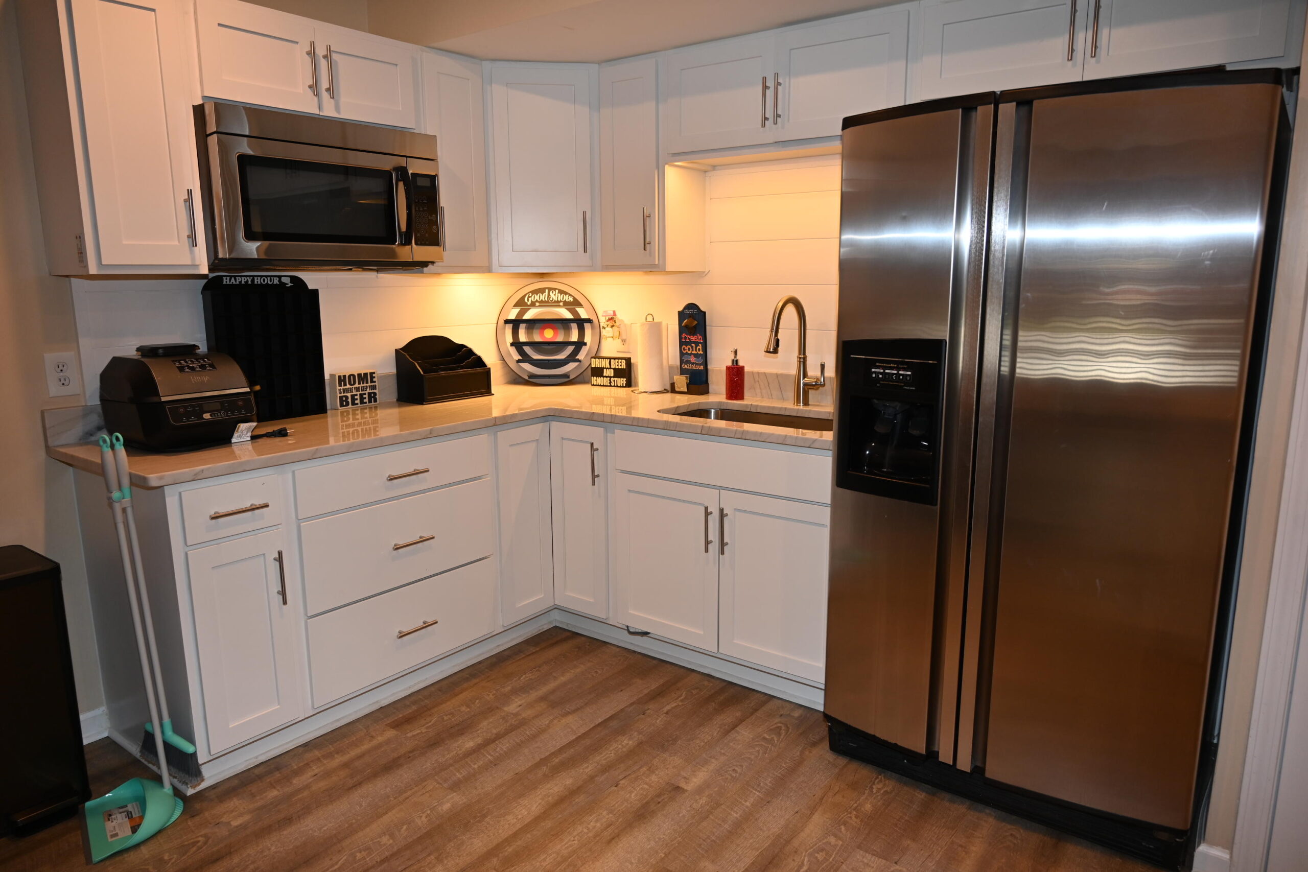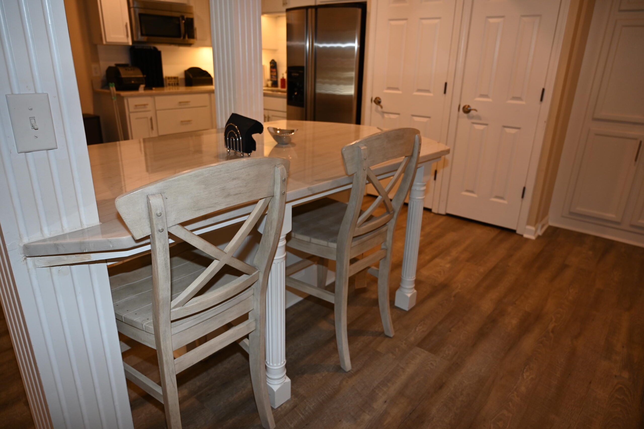 Description: $7200 Main level has den with sectional, 65"TV. Beautiful new kitchen and dining area. Dining room. Full bath. Primary Bedroom with KING bed, 65"TV and Full private bath. Sunroom with sectional and 50"TV. Large Deck with ample seating, grills.